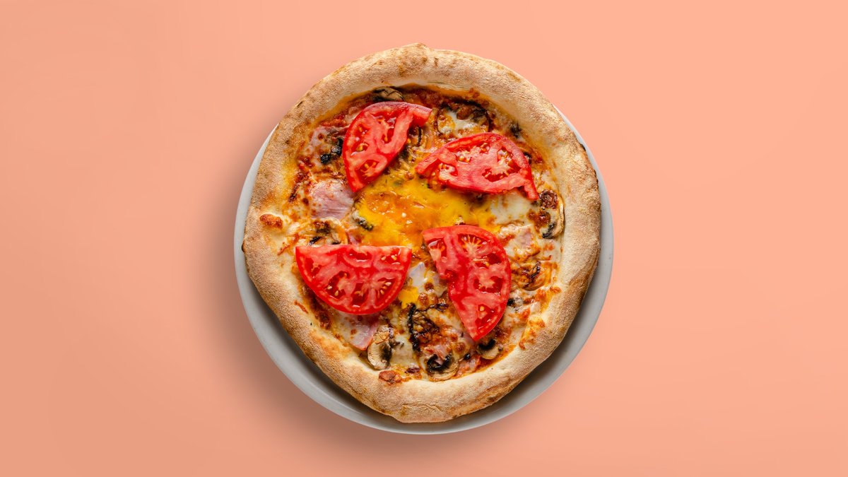 доматен сос, гъби, бекон, моцарела, пресен домат, яйце 600гр