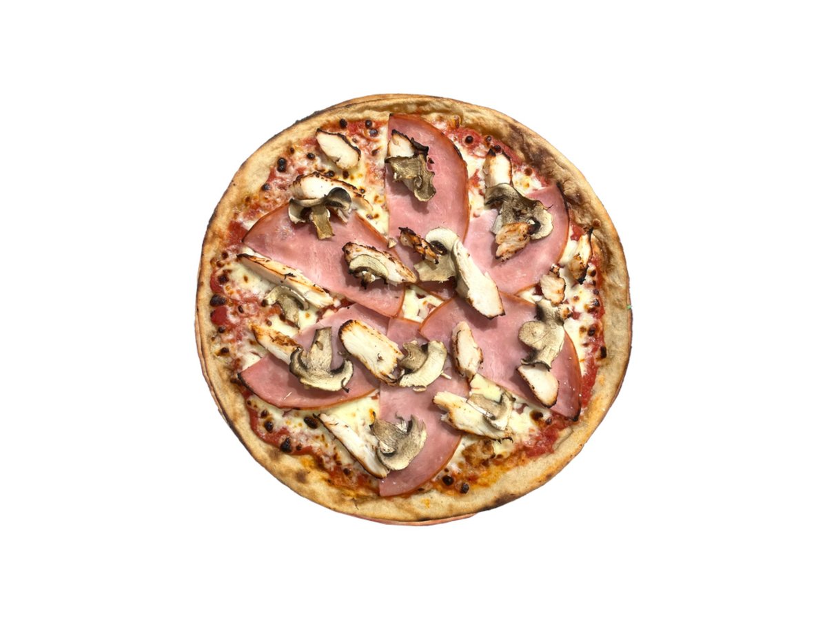 доматен сос, моцарела, прошуто кото, гъби 200г