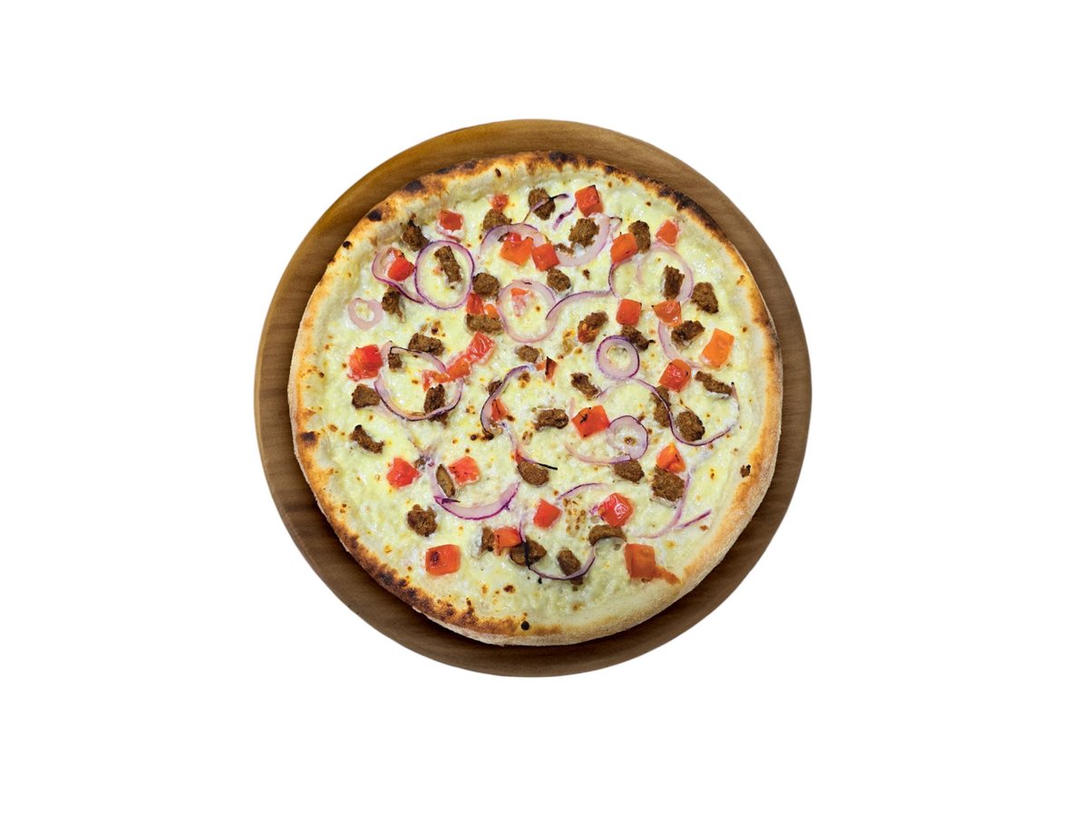 доматен сос, моцарела, ементал, луканка, зелени чушки и червен лук 225г