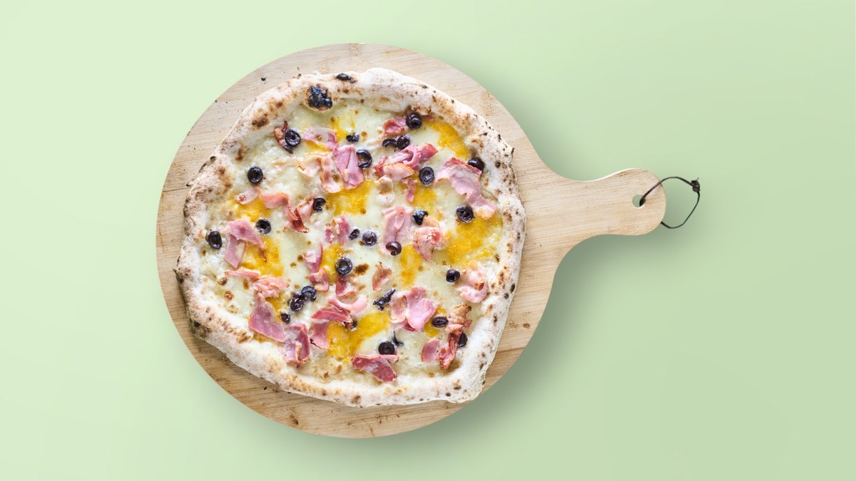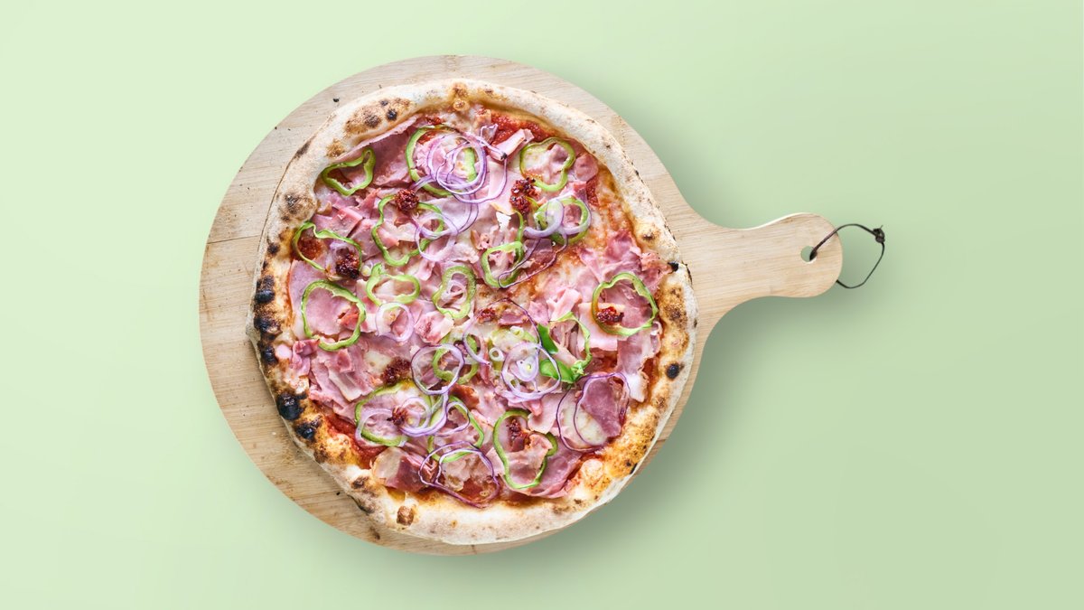 доматен сос, прошуто кото, бекон, моцарела, лук, чушка, ндуя