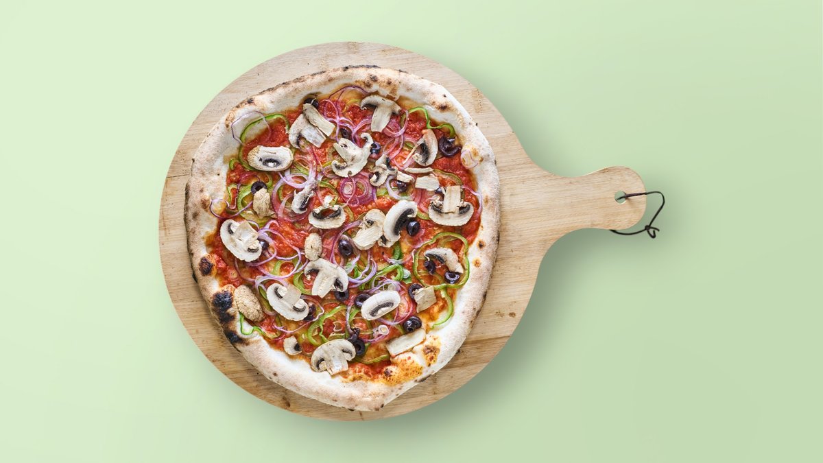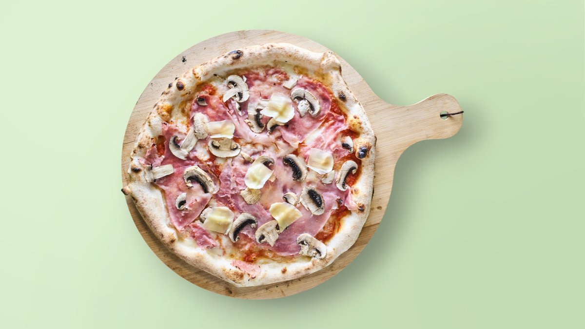 доматен сос, моцарела, прошуто кото, гъби, артишок