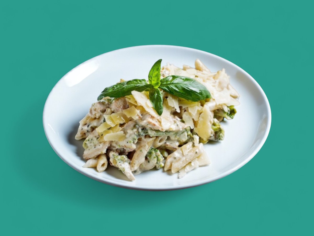 Пене с броколи и пилешко филе, горгонзола и Пармезан