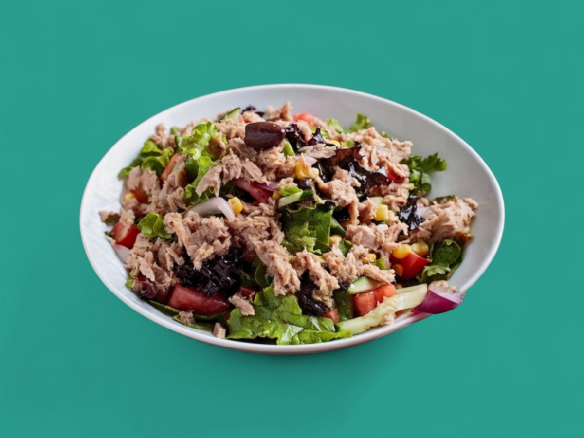 микс от свежи салати, домати, краставици, риба тон, яйце, маслини, червен лук и царевиц 380га