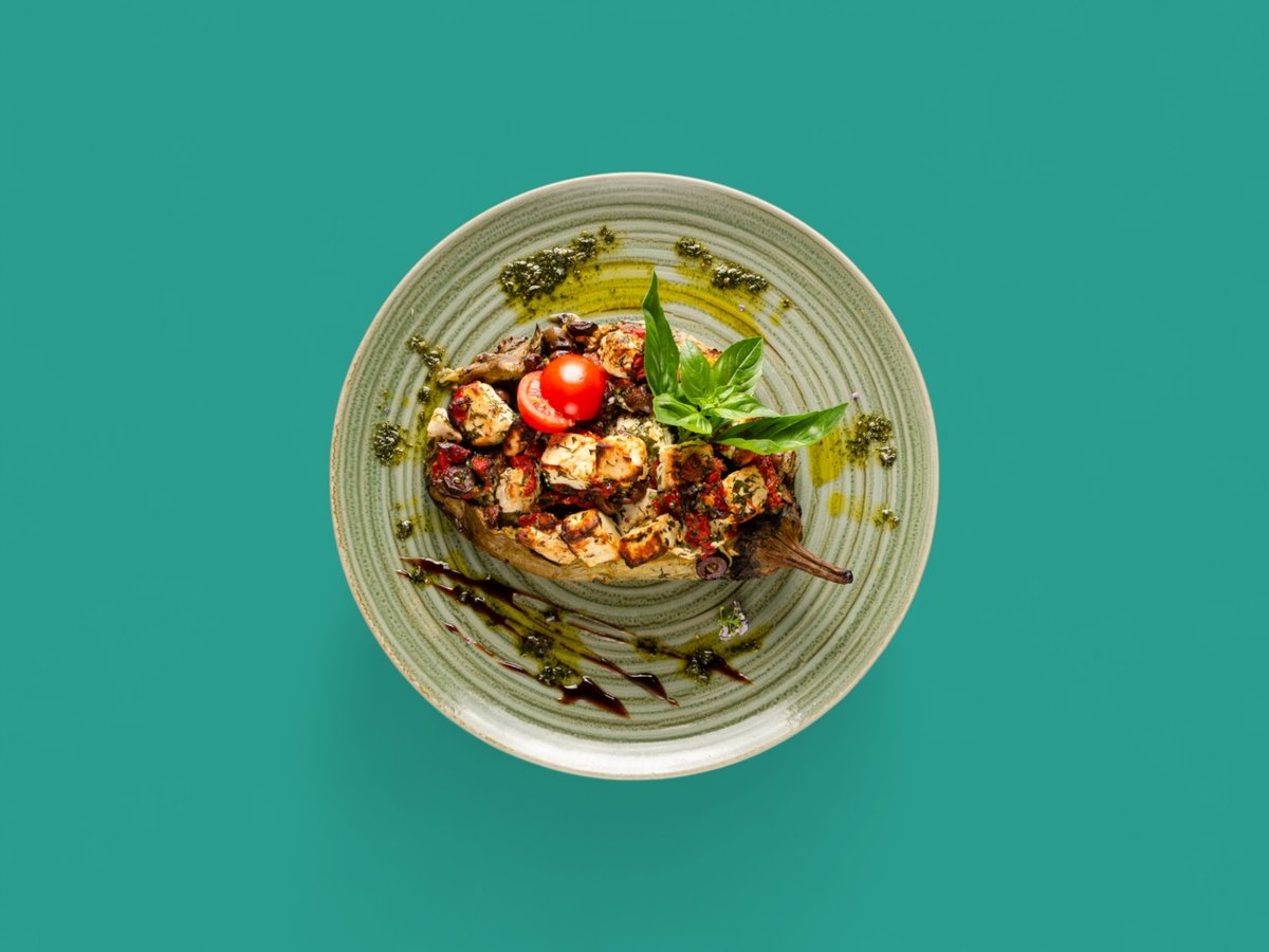 кремообразна Бурата, белени домати, авокадо, рукола, домашно босилеково песто, кашу 380г