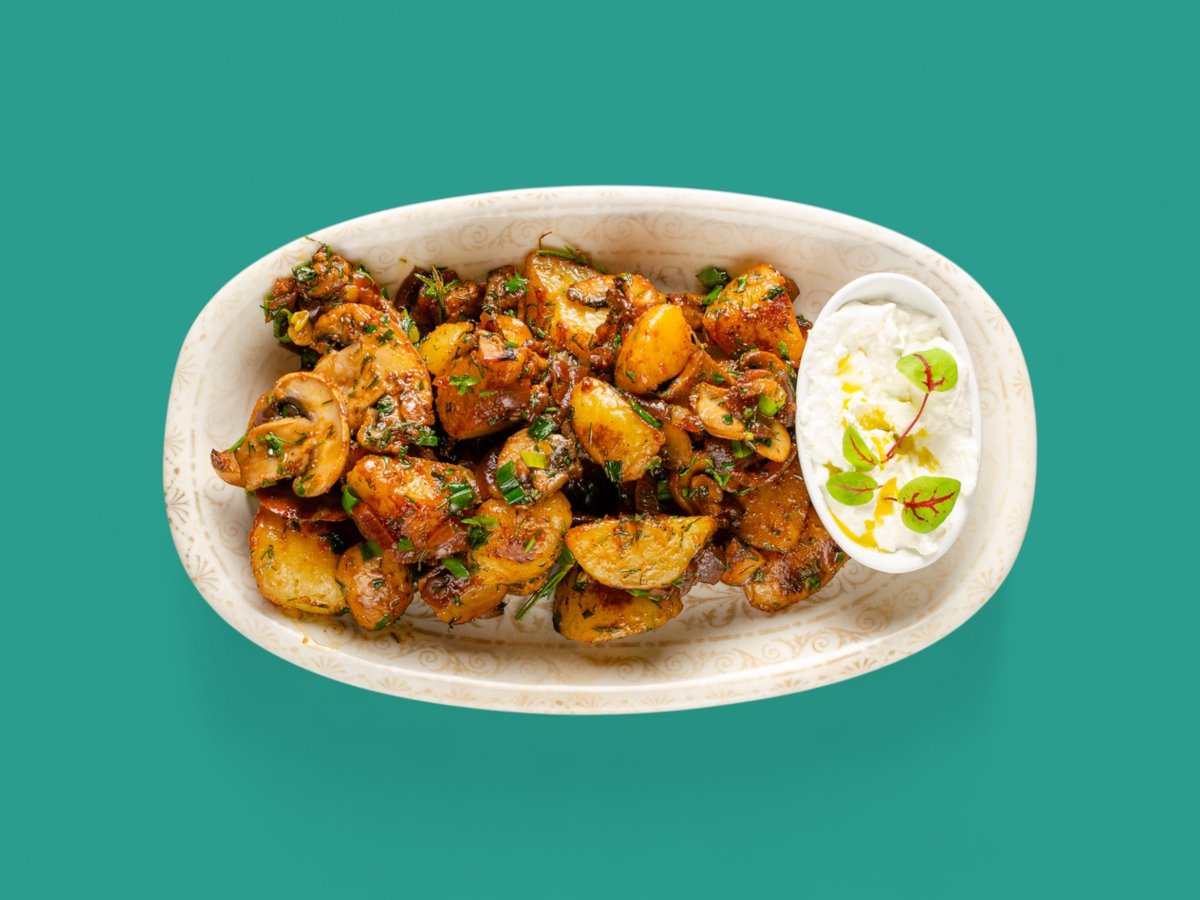 карамелизиран лук, пресни подправки и заквасена сметана 300г