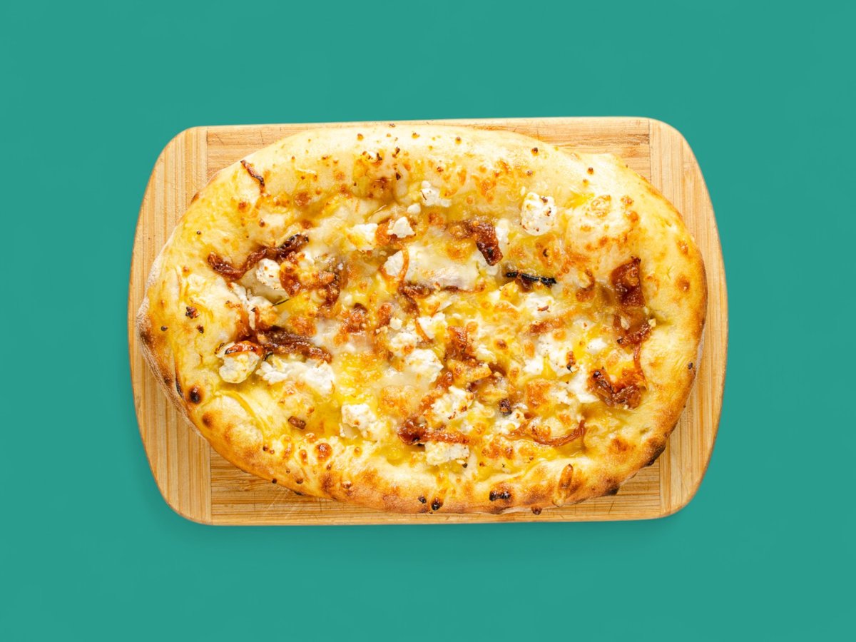кашкавал, лук, бекон, маслини, яйце, доматен сос, риган 460г