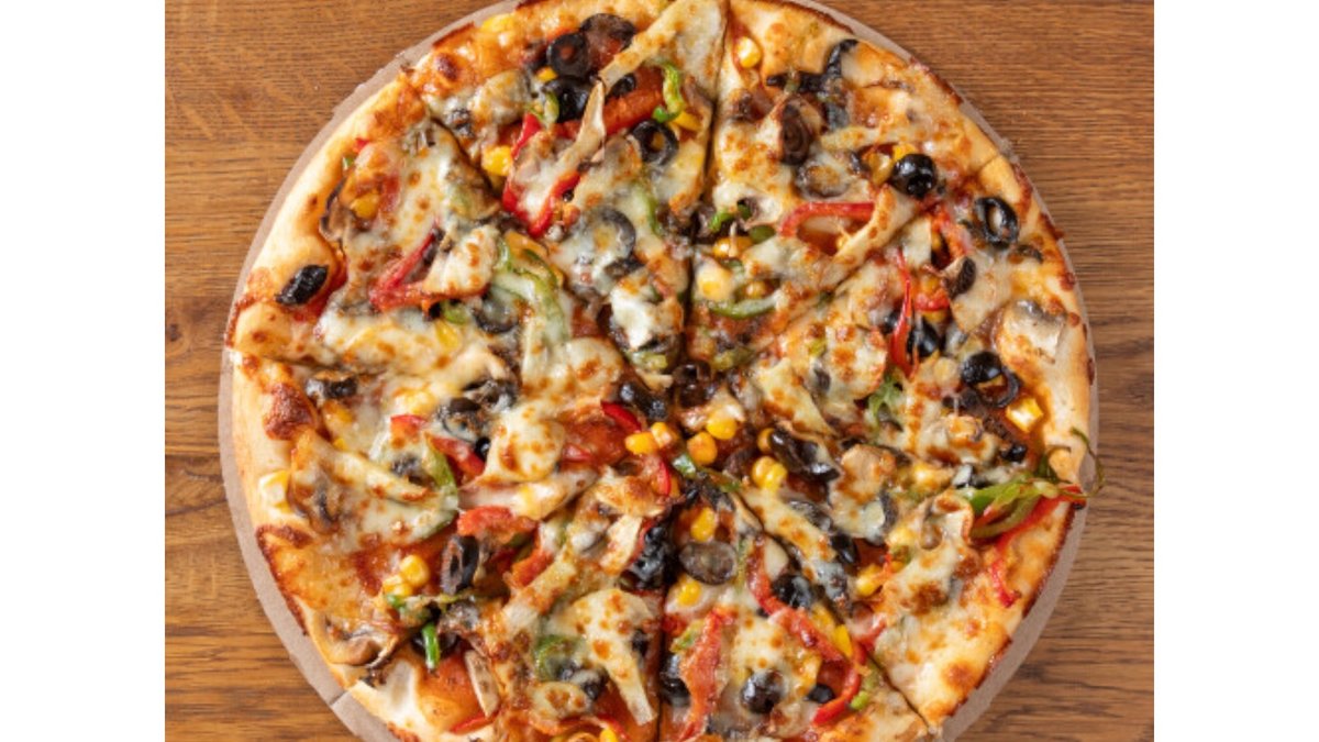 Доматен сос, чушки, гъби, царевица, маслини, кашкавал