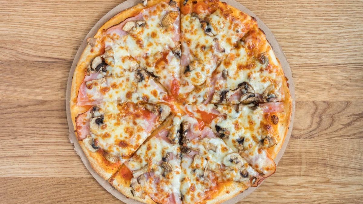 Доматен сос, шунка, гъби, кашкавал