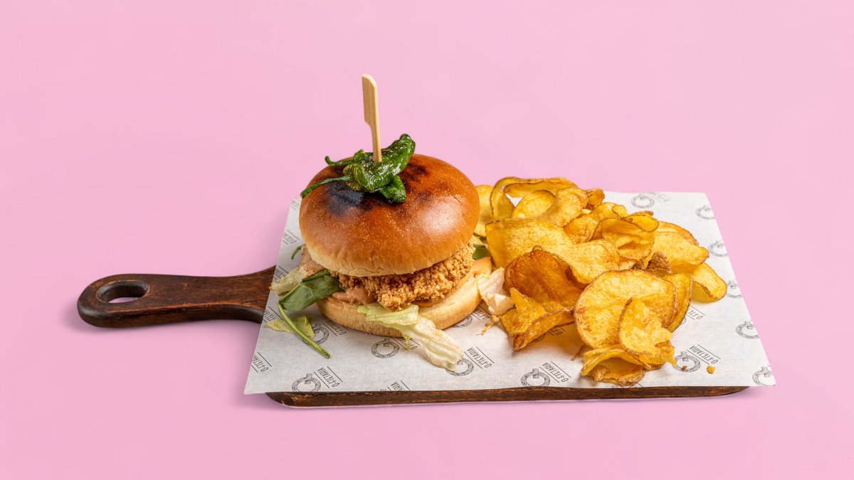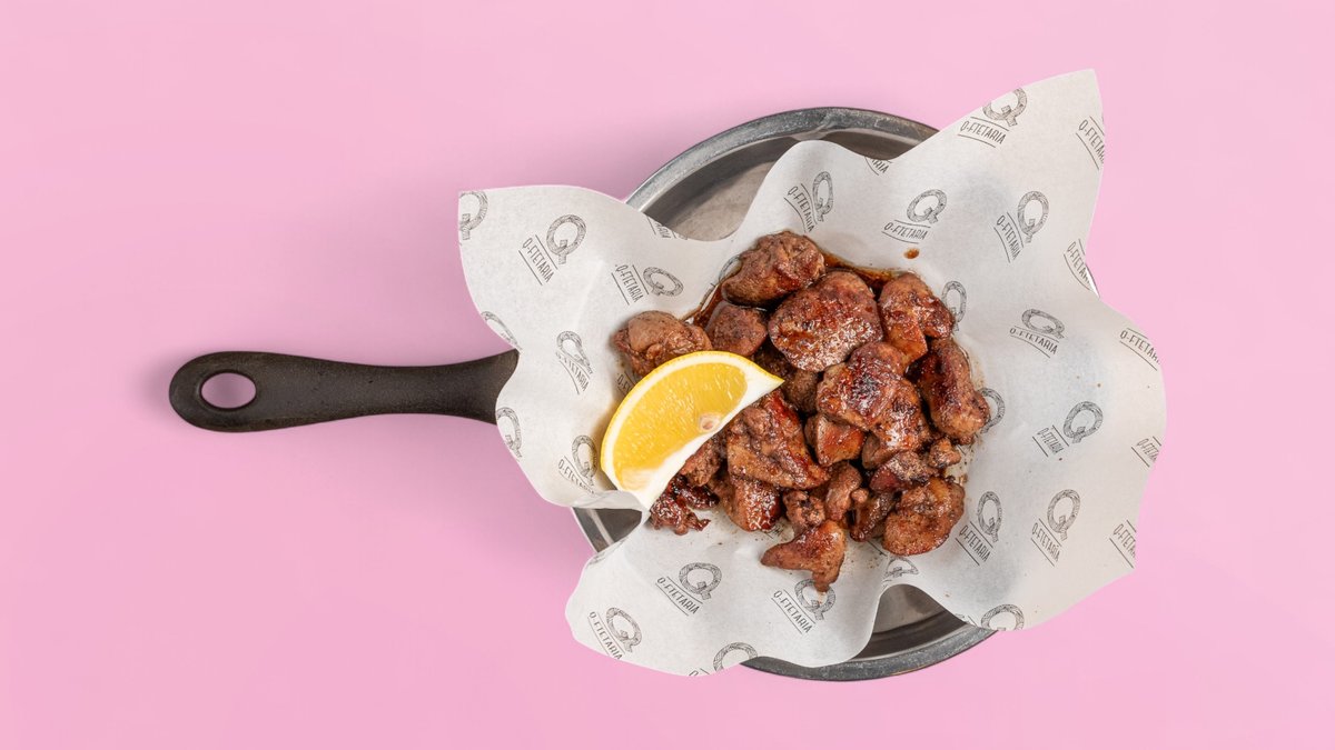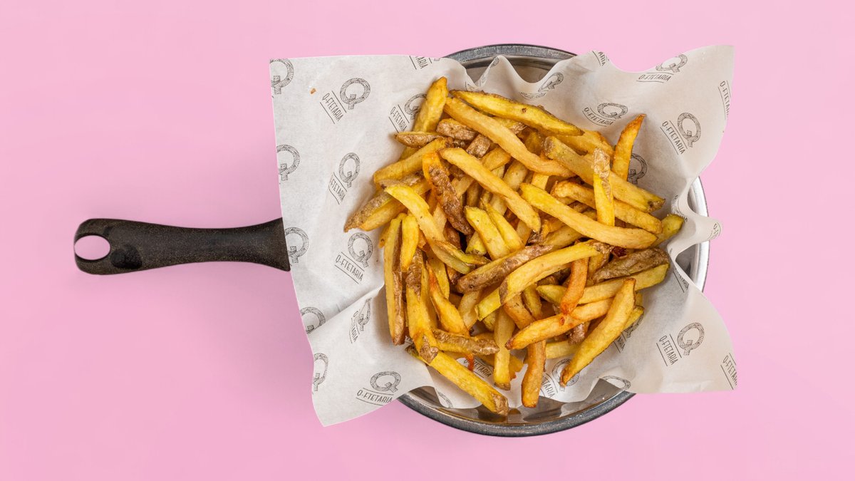 с 2 бр. Q-fteta от пълнена чушка, халапеньо с пармезан и обвити с овкусена свинска кайма със селъри и сушен домат, поднесени с пържени картофи, и лютеница 420г