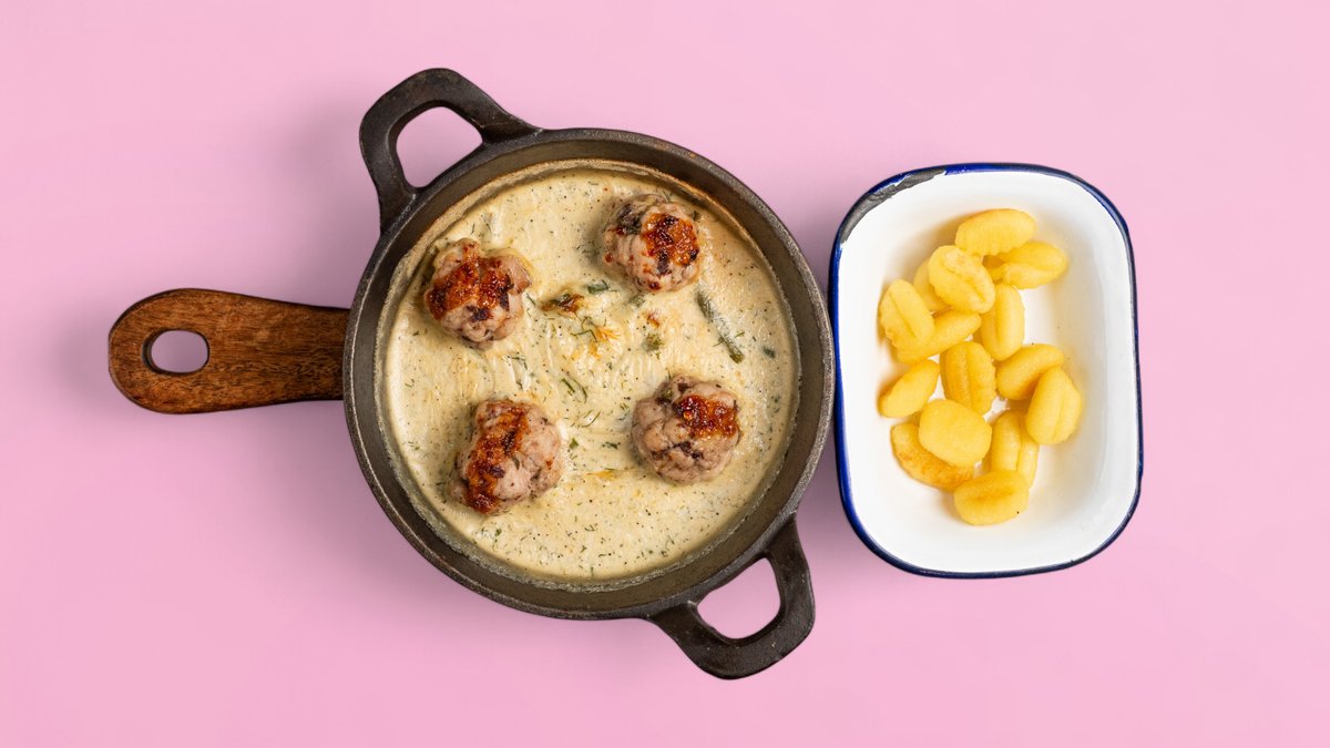 с пуешки кюфтета на фурна с бял сос и зелен фасул, ньоки 460г