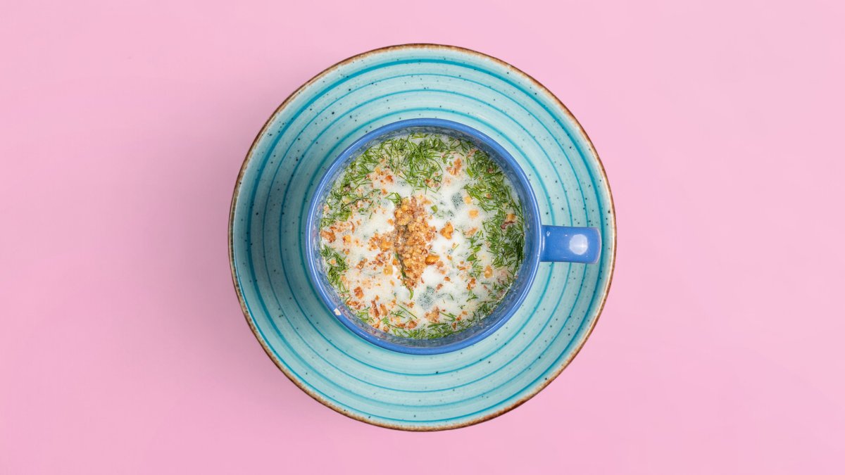 студена супа с кисело мляко, краставици, печени орехи и копър 350г