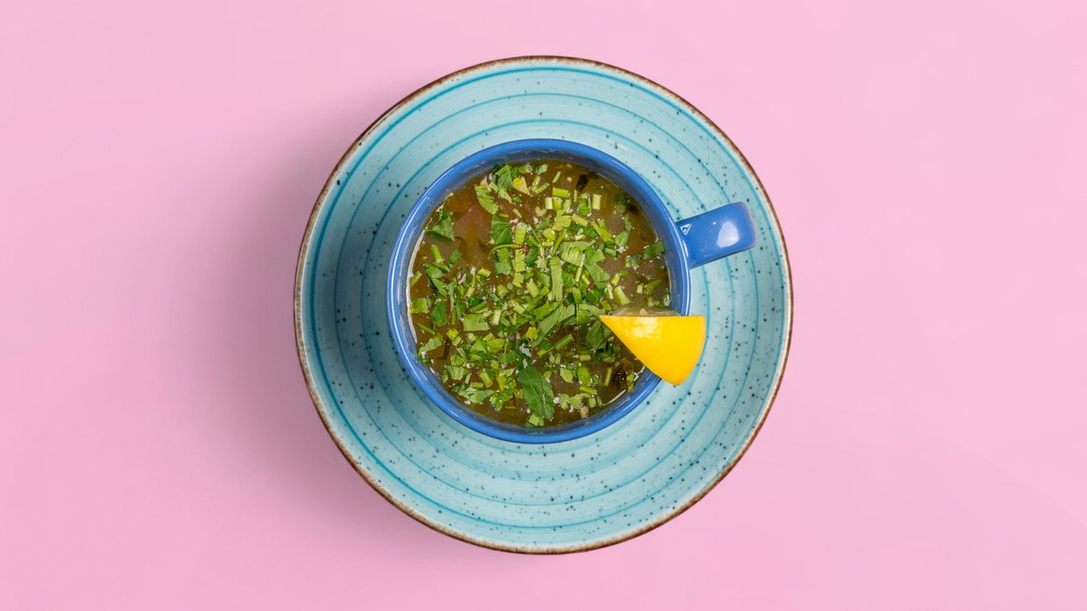 супа от нахут, гъби, каперси, ЧУШКИ, пащърнак, селъри, кокосово мляко, поднесена с гъбени кюфтета на шиш 390г