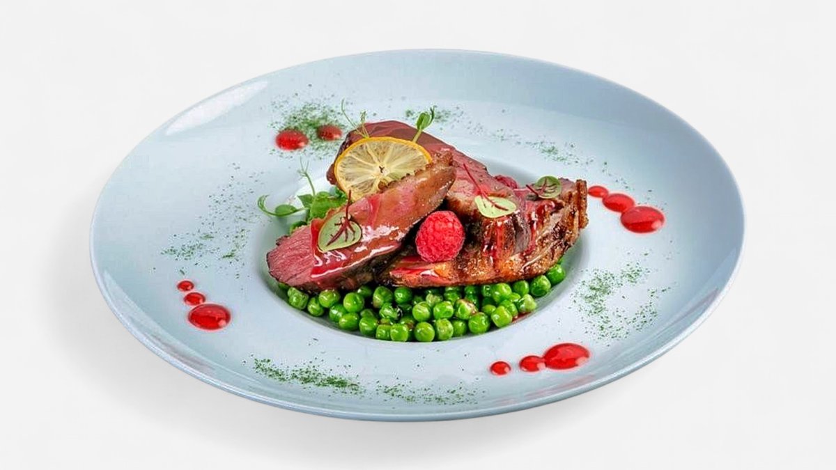 телешко каре с интензивен вкус, върху канапе от ризото с пармезан и рукола, 350г