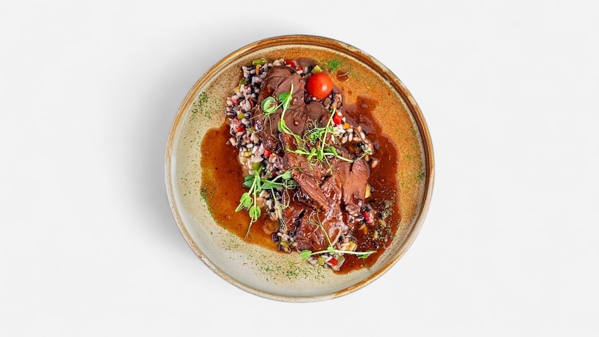 бавно готвени телешки бузи с кремообразно ризото, 380г