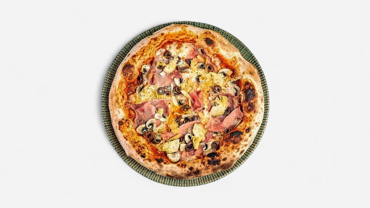 шунка, гъби, домати, моцарела, артишок, маслини и риган, 350г