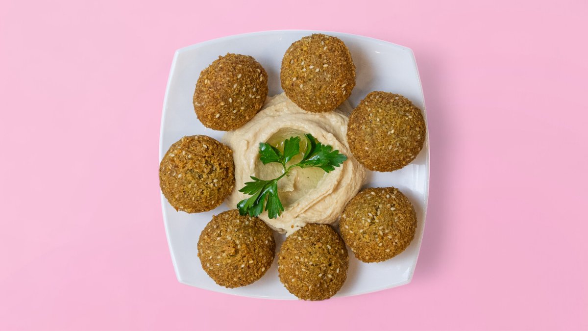 порцията фалафел е популярно близкоизточно ястие, приготвено от смлян нахут, подправки и билки. това е вегетарианско ястие, което е отличен източник на протеини и фибри.