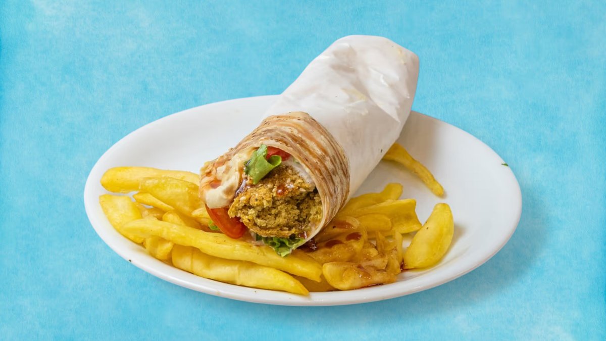 фалафел дюнерът е вкусен вегетариански wrap, пълен с хрупкави фалафел кюфтенца, свежи салати и ароматни сосове, увити в меко питка. перфектен избор за апетитно безмесно хапване.