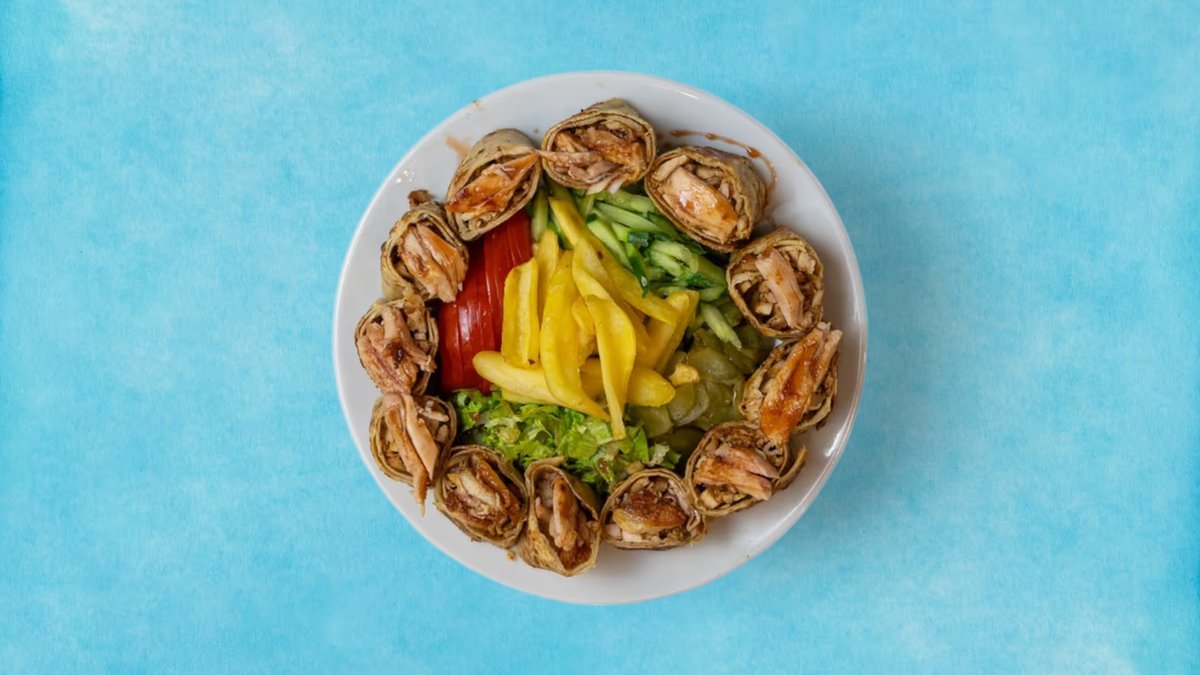 тънко навито и нарязано като суши, сервирано в порционна чиния с разнообразие от салати като гарнитура. перфектна комбинация от наситените вкусове на шаурма и елегантната поднесеност на суши – това уникално ястие със сигурност ще погъделичка вкусовите ви рецептори.