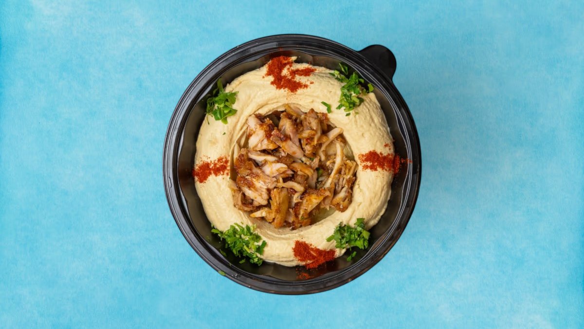 насладете се на нашата изискана чиния с хумус и месо, с ваш избор от крехко пиле или телешко, майсторски изпечено до съвършенство. поднесено с домашно приготвен хумус, това е прекрасно съчетание на вкусове, което гарантирано ще удовлетвори вашите сетива.