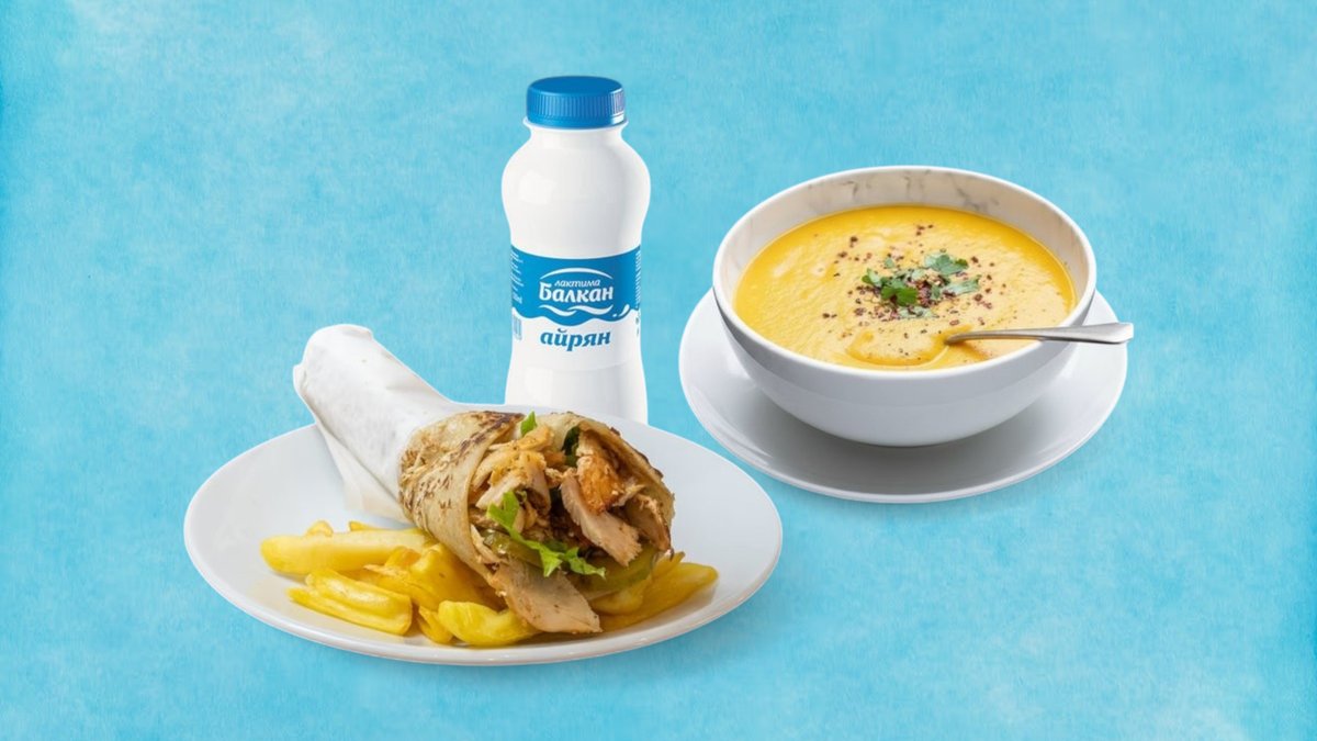 Пилешки дюнер + Супа леща + Айрян Балкан 330мл.