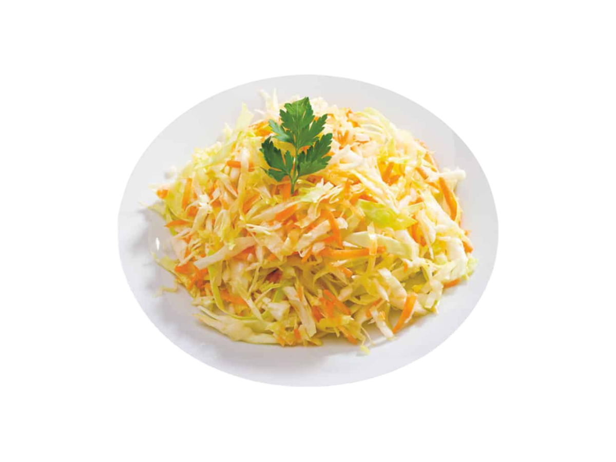 с гарнитура пържени картофи, зеле с моркови и лютеница 500г