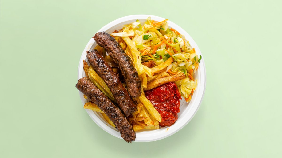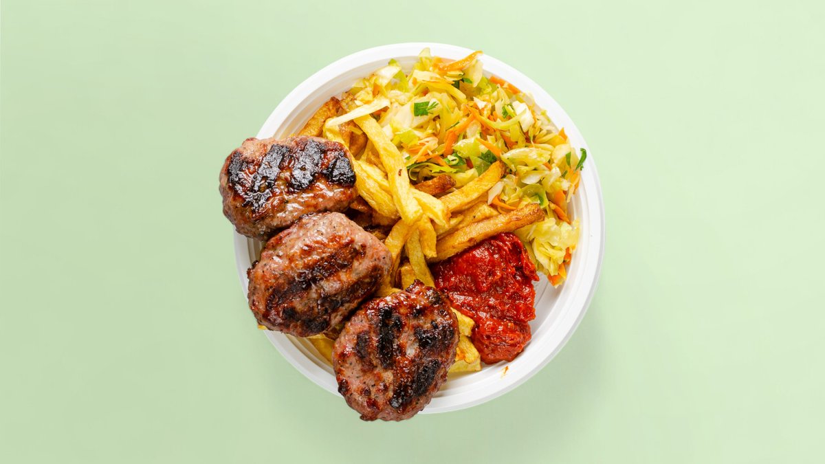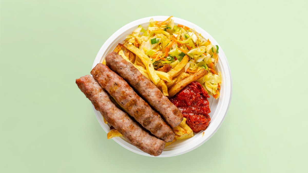 3 броя с гарнитура пържени картофи, зеле с моркови и лютеница 500г