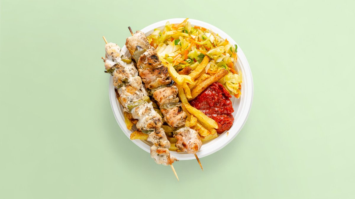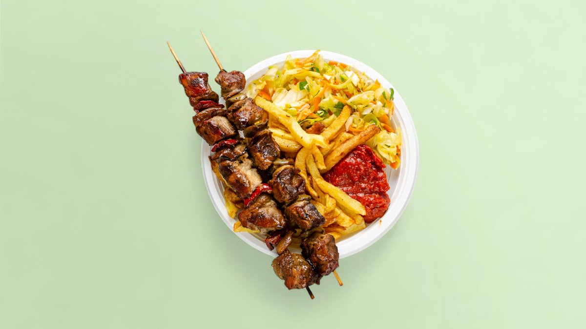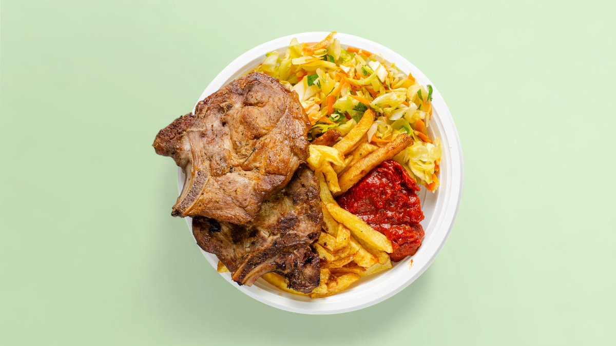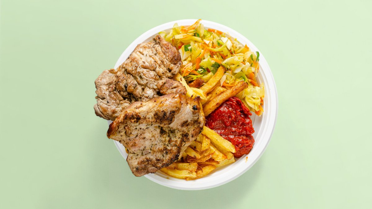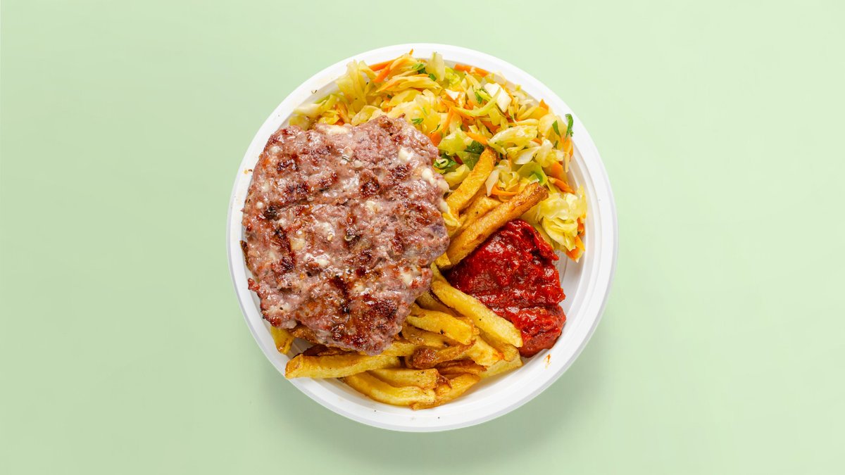 2 броя с гарнитура пържени картофи, зеле с моркови и лютеница 500г