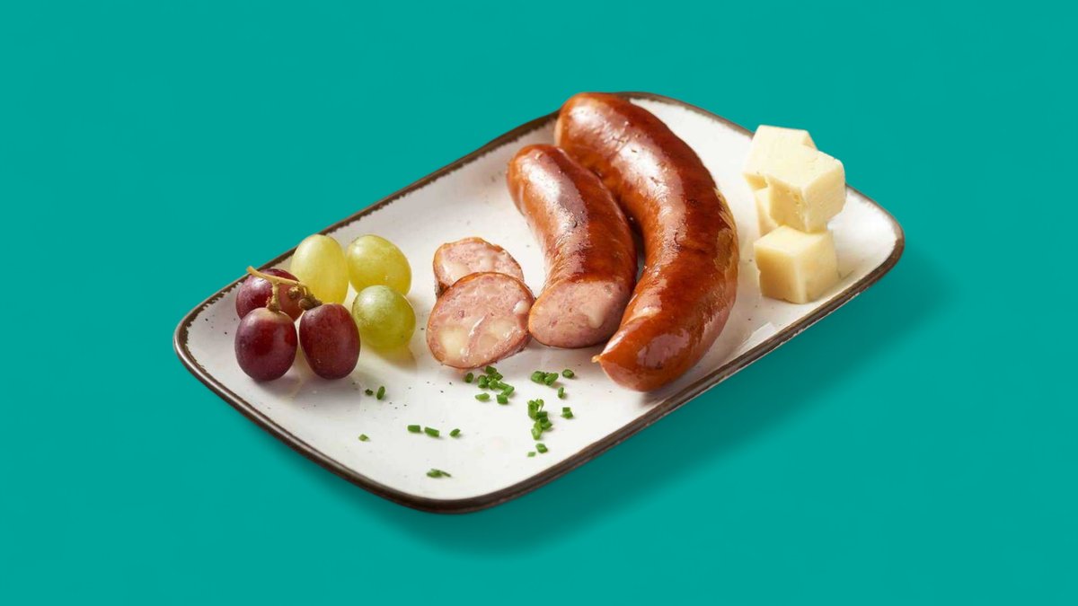 Порция баварски вурстове от телешко, свинско, ементал, чили (240 гр) с фирмен къривурст сос (50 мл).