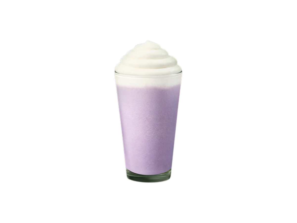 Сос с аромат на UBE ванилия, смесен с Crème Frappuccino основа, пълномаслено мляко и лед, гарниран с бита сметана.