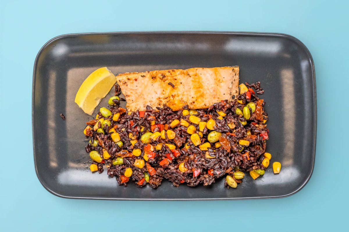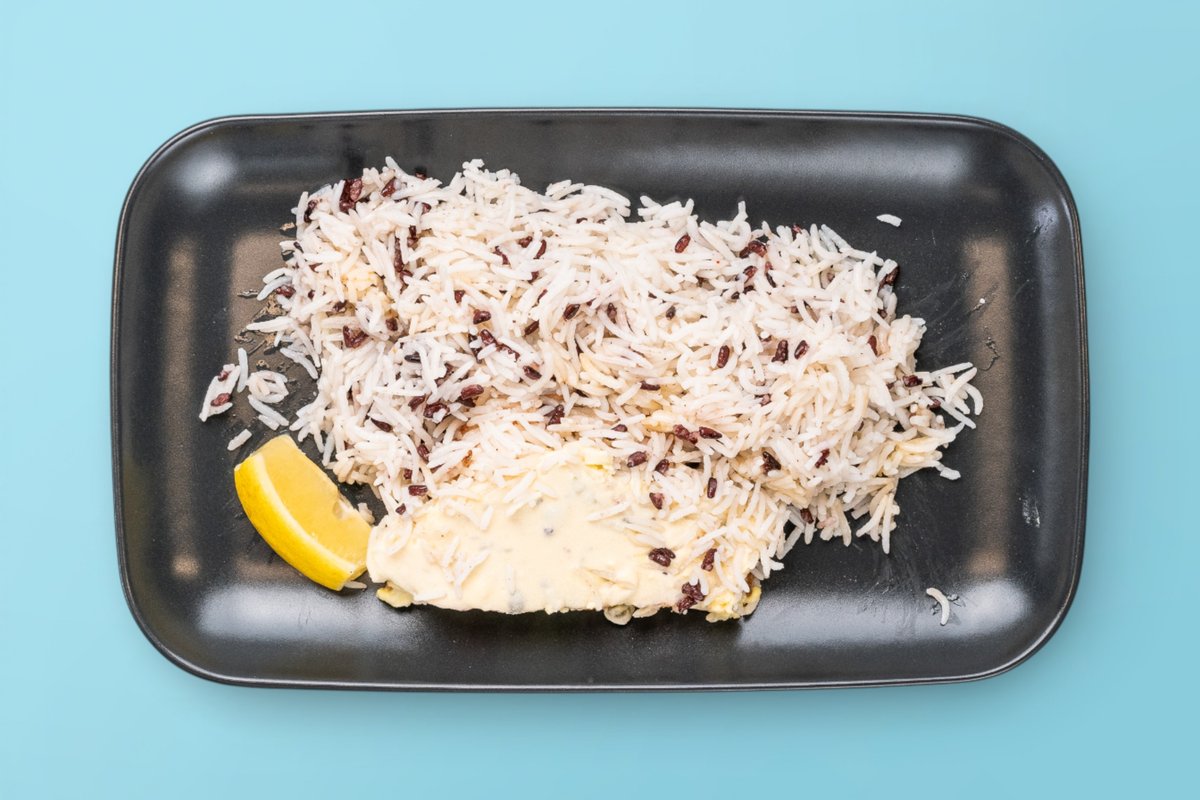 Сьомга филе с пъстър ориз и маслено лимонов сос