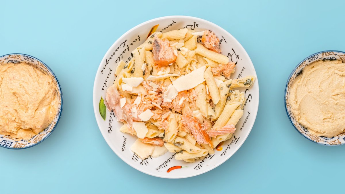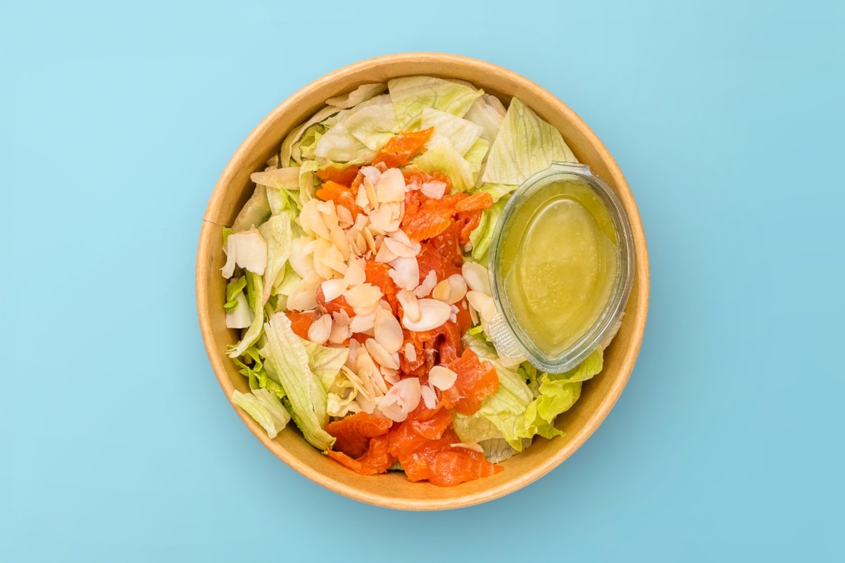 айсберг, студено пушена сьомга, бадем и дресинг 350г.