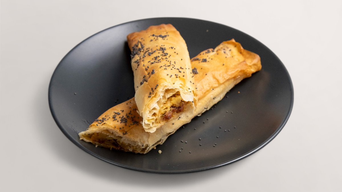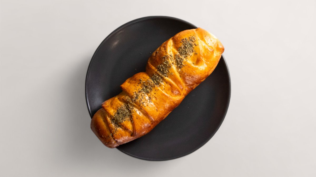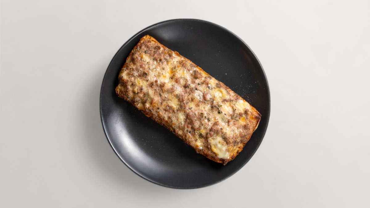чиабата намазана с топено сирене, кайма смес (телешка и свинска), яйце, кашкавал, прясно мляко, чубрица и риган 200 г.