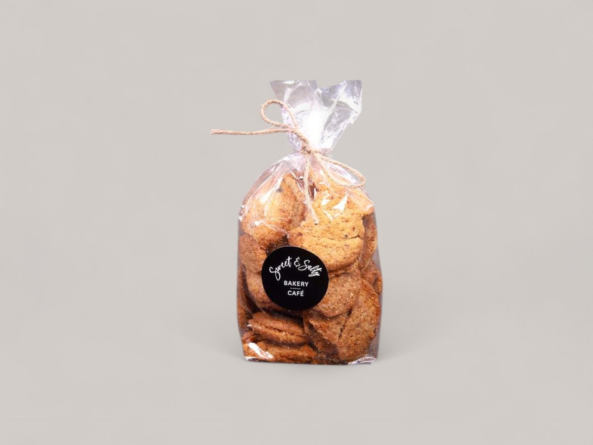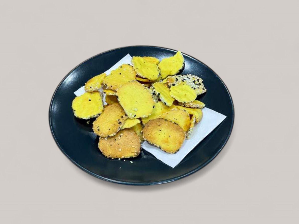 брашно, масло, пармезан, сусамови семена, яйца, сол, куркума 100 г.