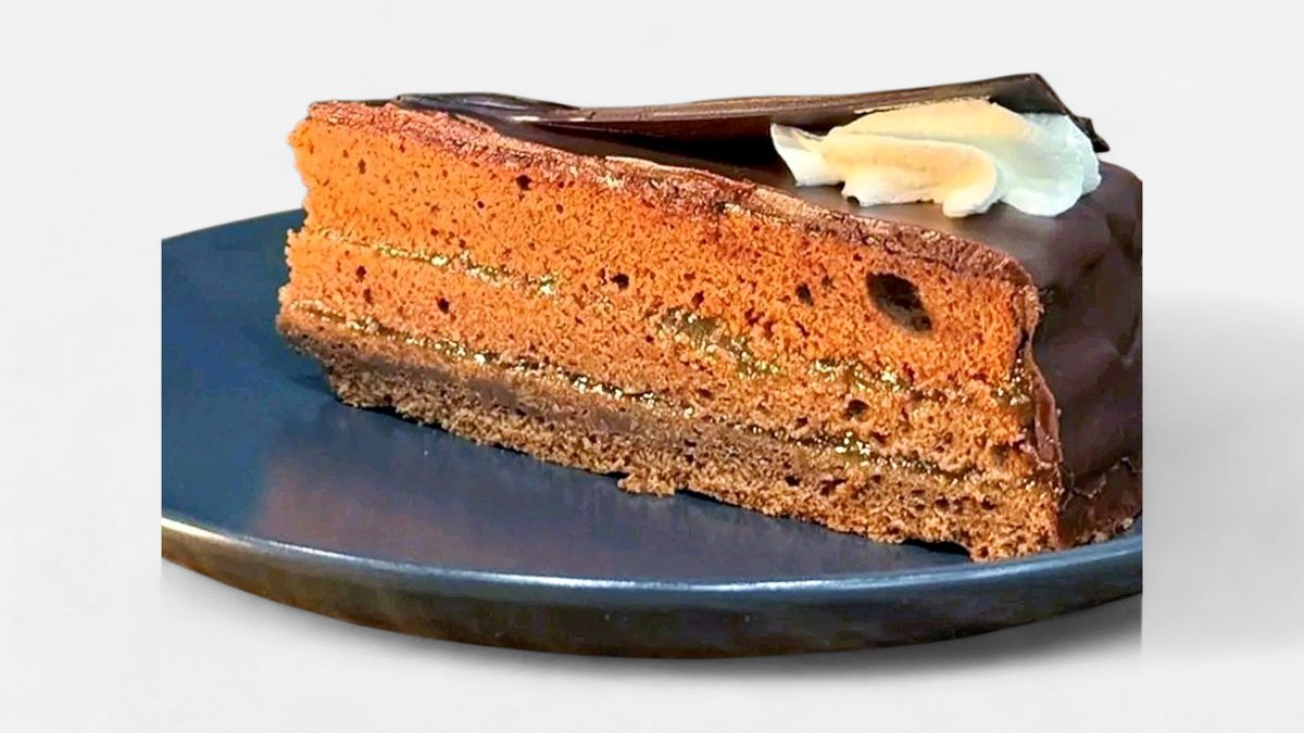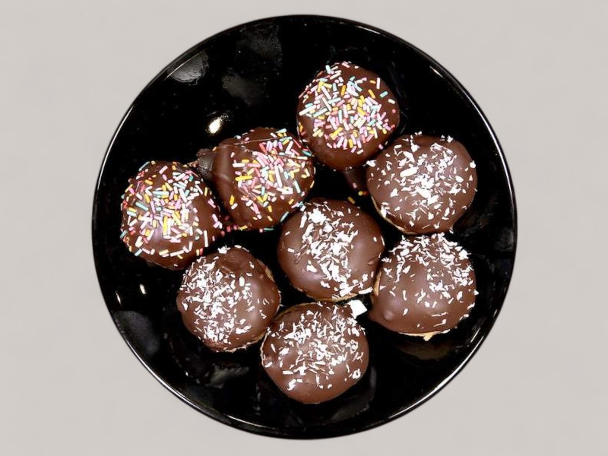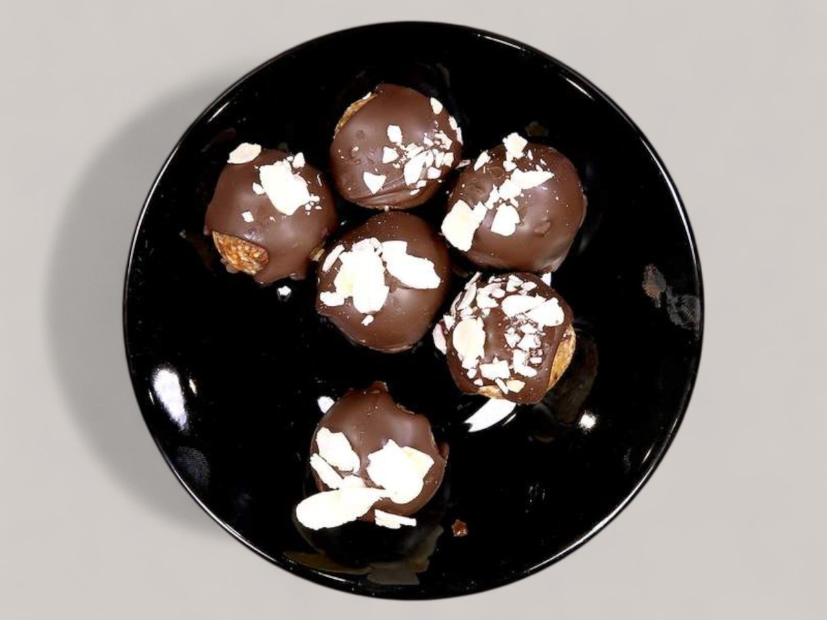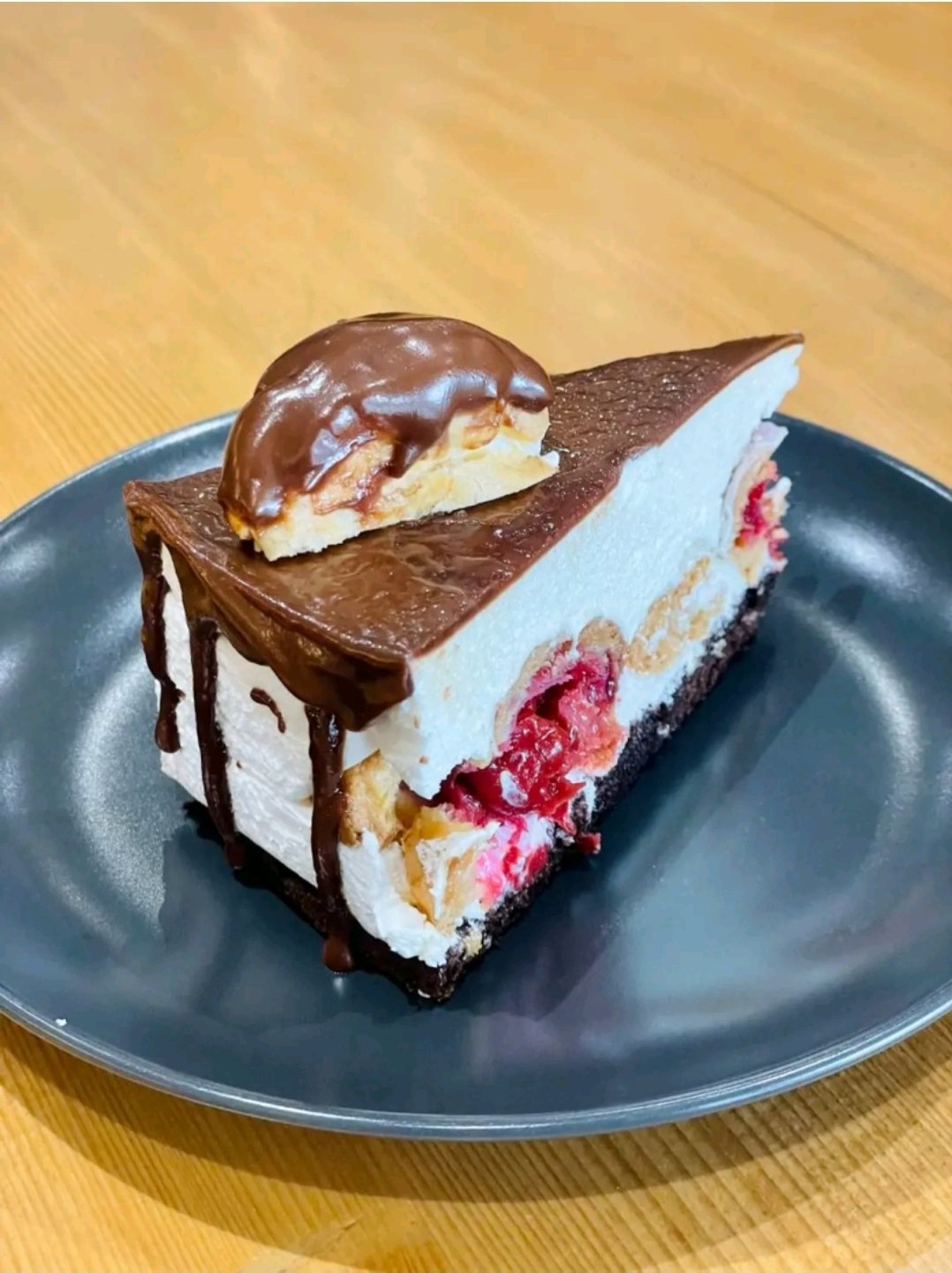 Торта с еклери, крема сирене, вишни, залята с течен шоколад