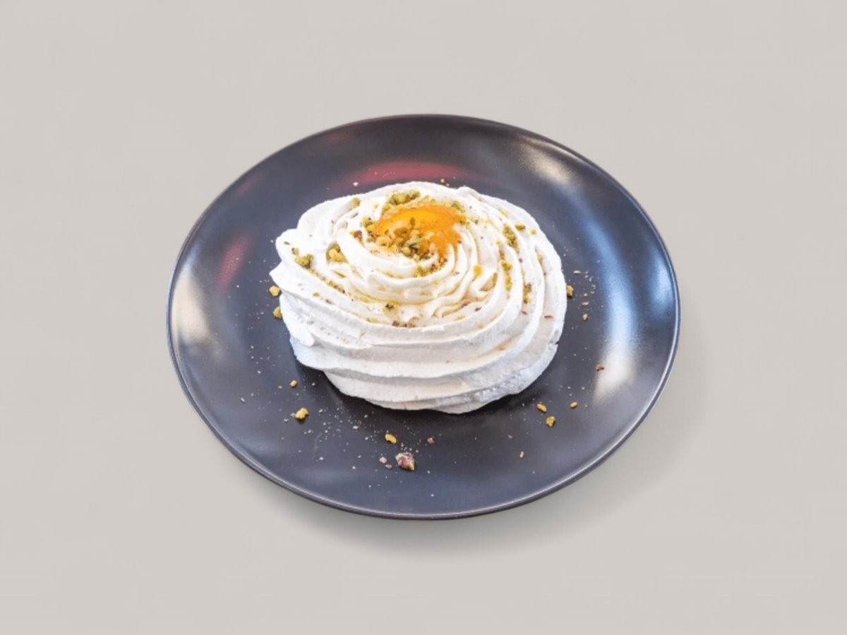 хрупкави бисквити с масло, запечени с крем брюле и лимон, украсено със запечени италиански меденки
