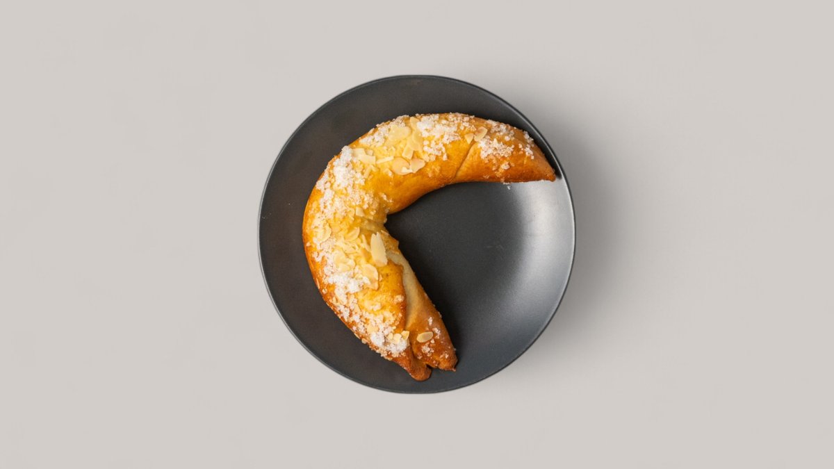 бяло брашно, захар, мая, прясно мляко, яйца, масло, ванилия, шипков мармалад и филиран бадем за украса отгоре 120 г.