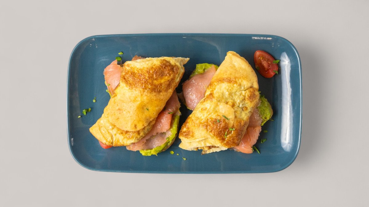 препечени пълнозърнести филийки, поширани яйца, сос Холандез и сьомга 250 г.