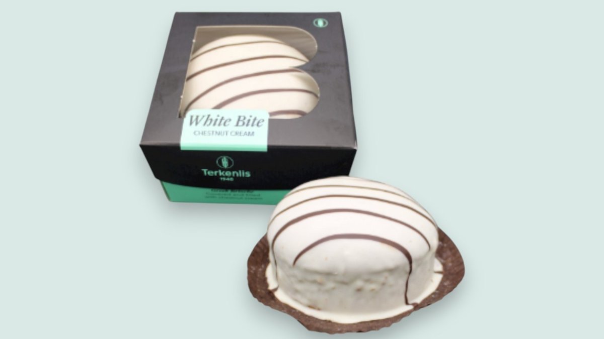 състав: крем от кестени 24%, пшенично брашно, глазура от бял крем 18%, млечни протеини, обезмаслено мляко на прах, емулгатори, ароматизанти, захар, вода, растителни мазнини, яйца, мая за хляб, глазура от какаов крем, какао на прах, ензими, портокалова паста, сол, царевично нишесте, канела