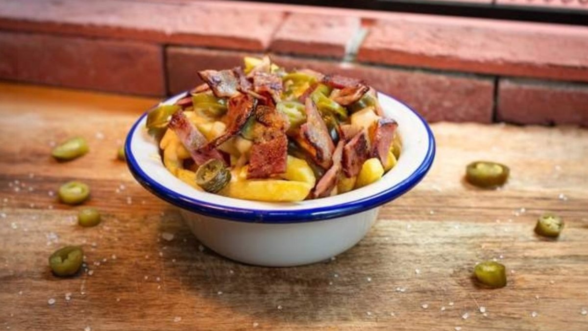 с хрупкав бекон, Чедър сирене сос 80мл и халапеньос, подправени с микс от подправки 300г
