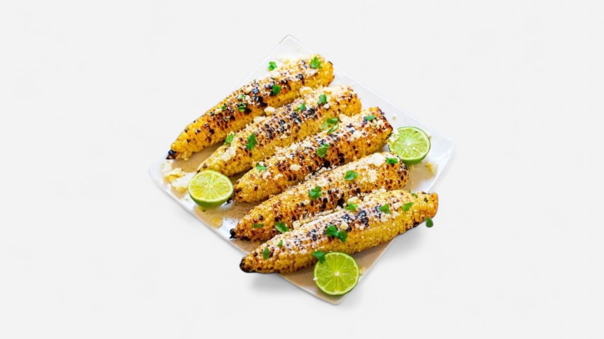 Грилована царевица покрита със сметана, майонеза, лайм, пармезан, кориандър, чесън и чили