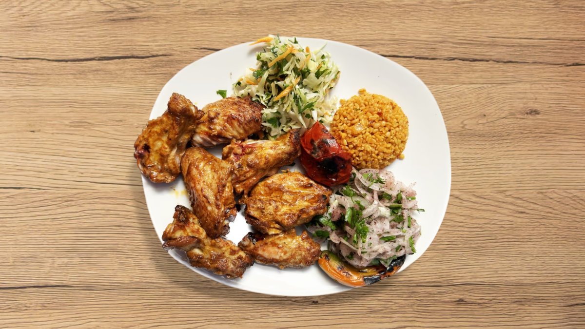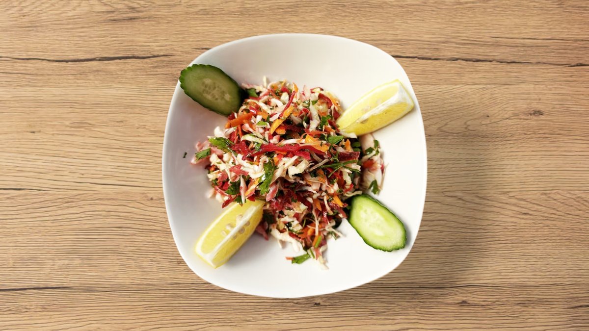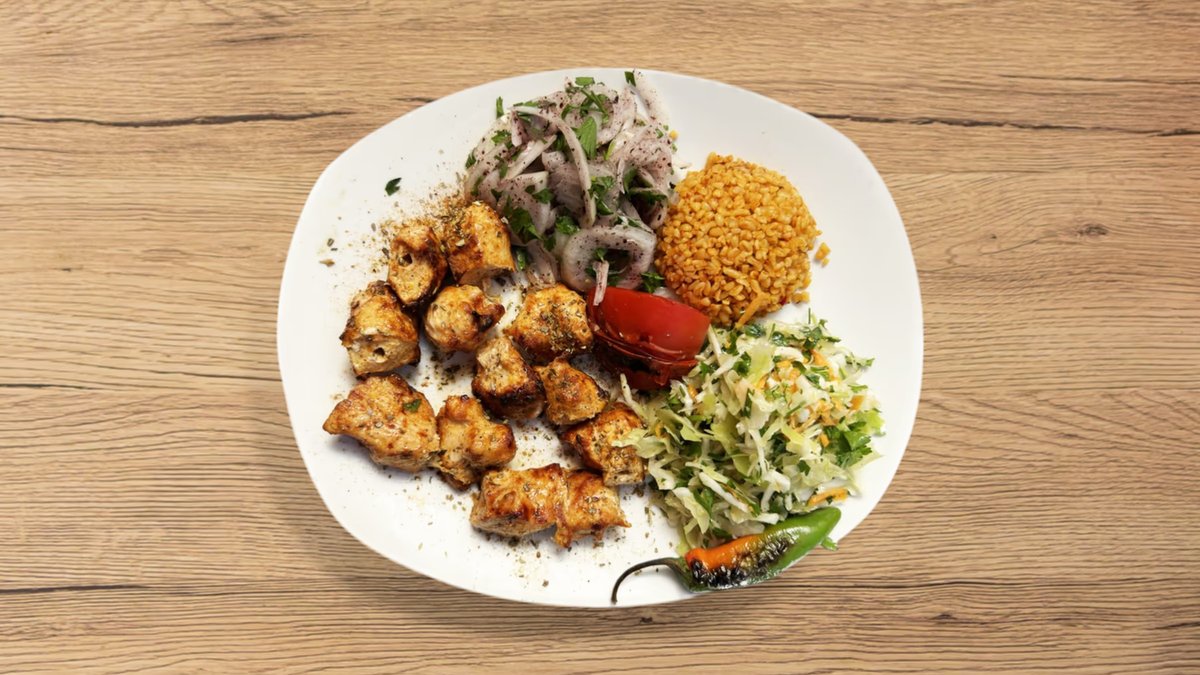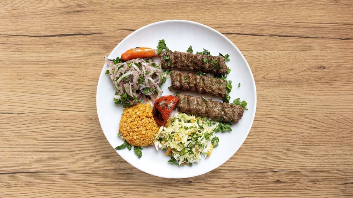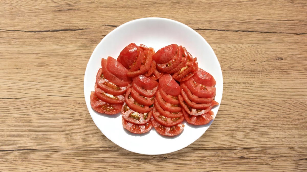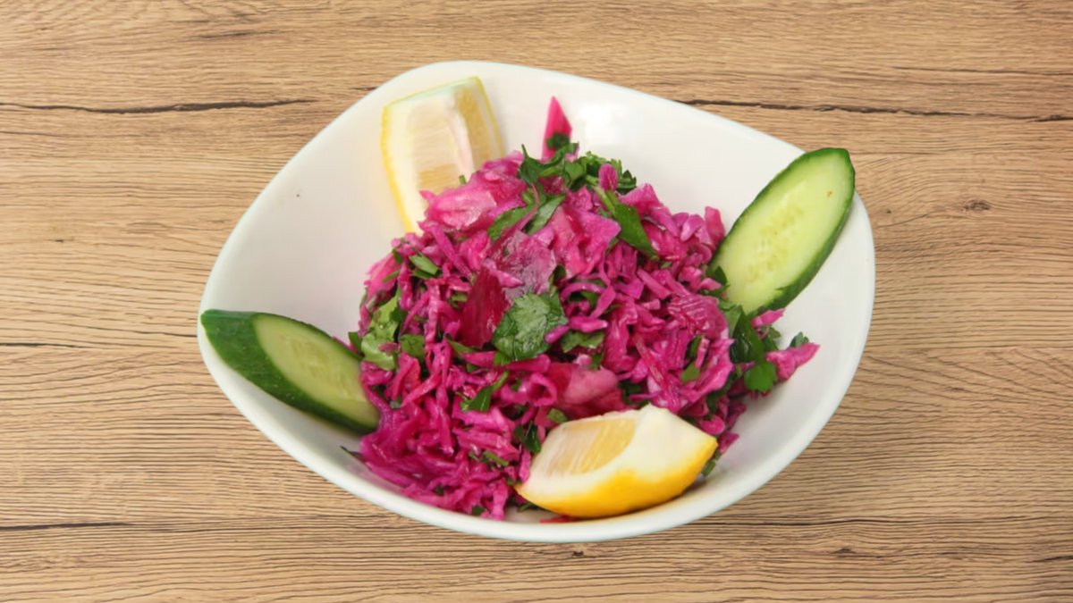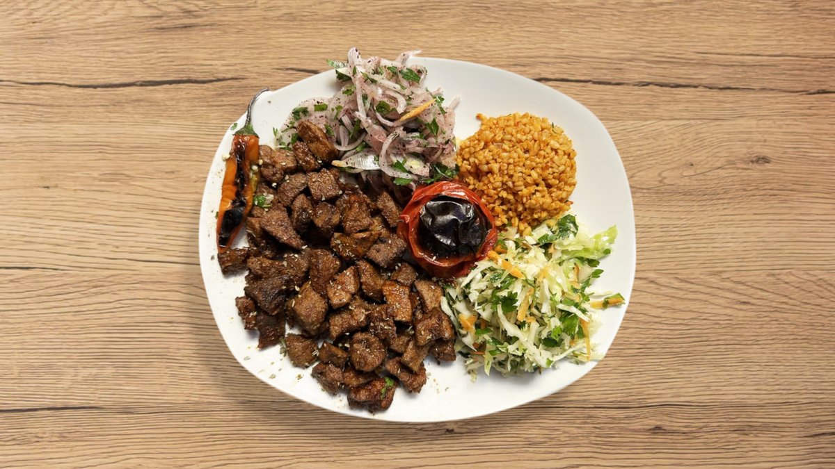 Домати, краставици, лук, магданоз, турски подправки и плочка сирене