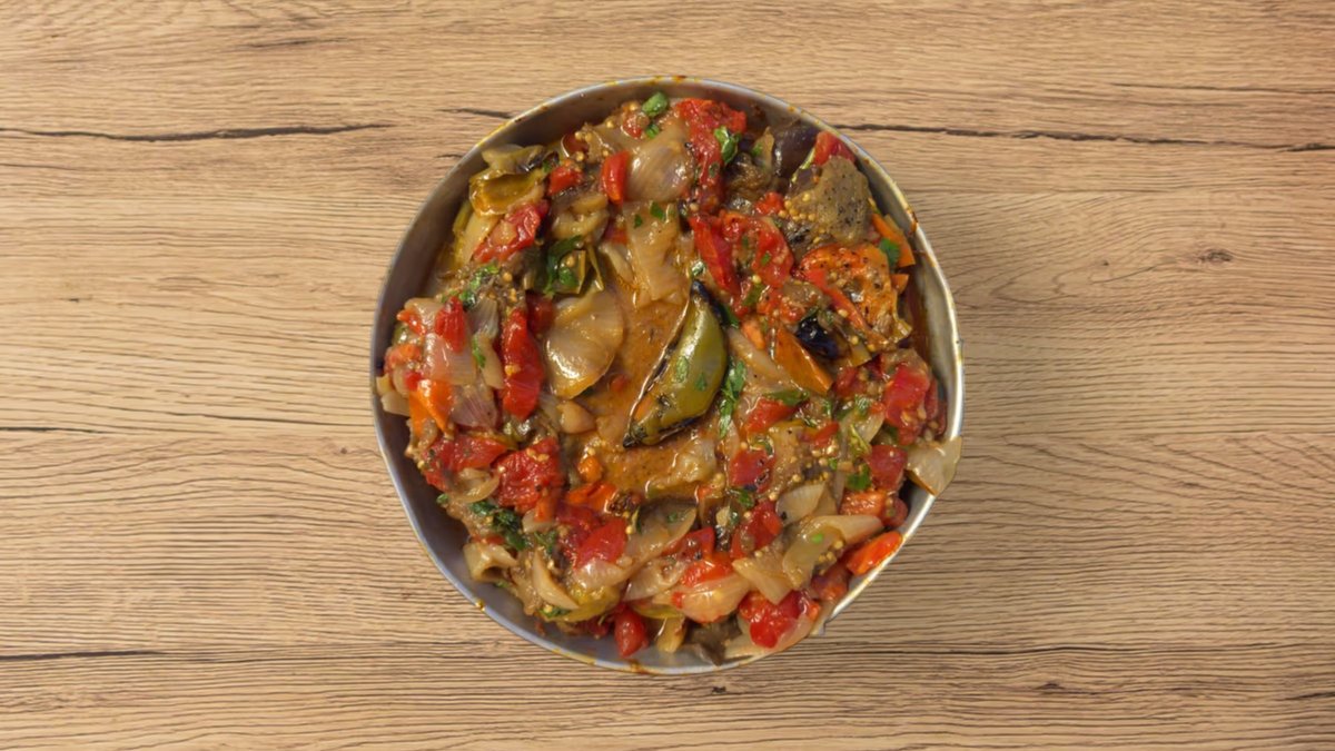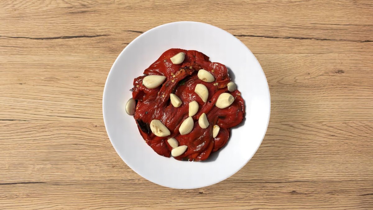 Домати, чушки, чесън, магданоз, зехтин, подправки, лимонов сок