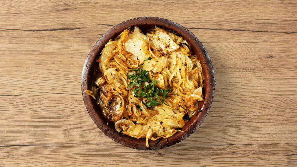 Агнешко месо, лук, домати, гъби, чушки, подправки 350г