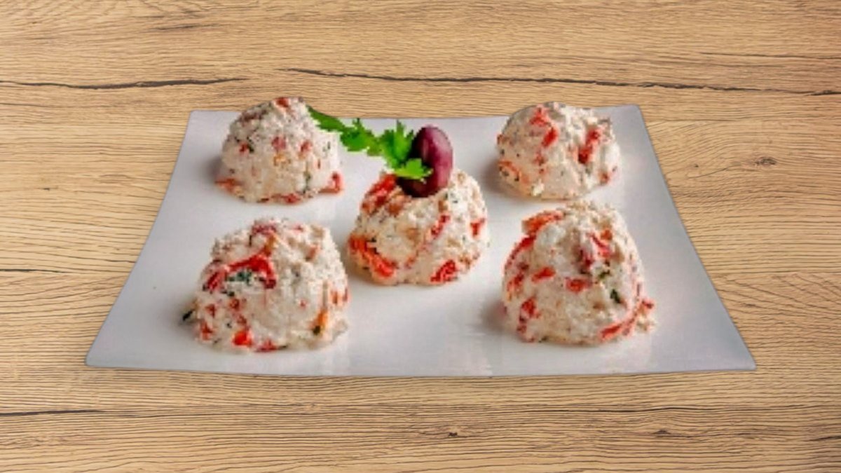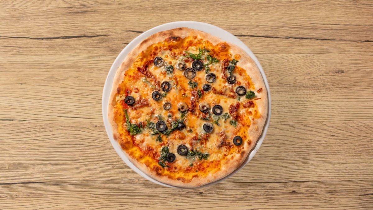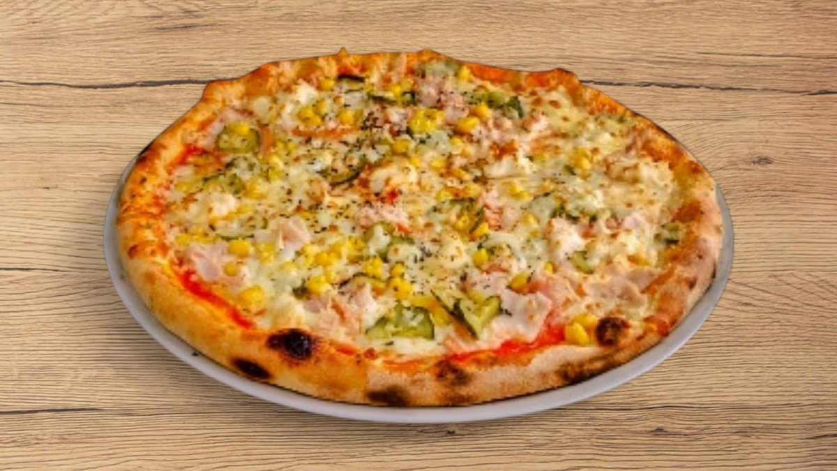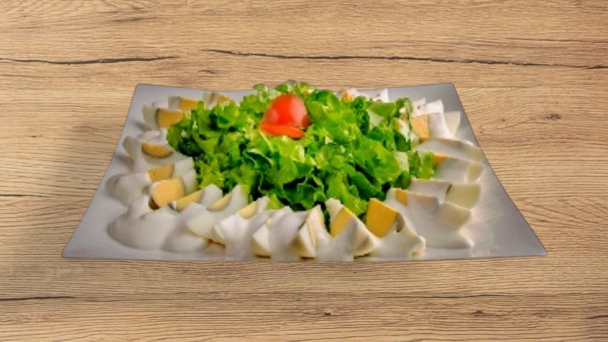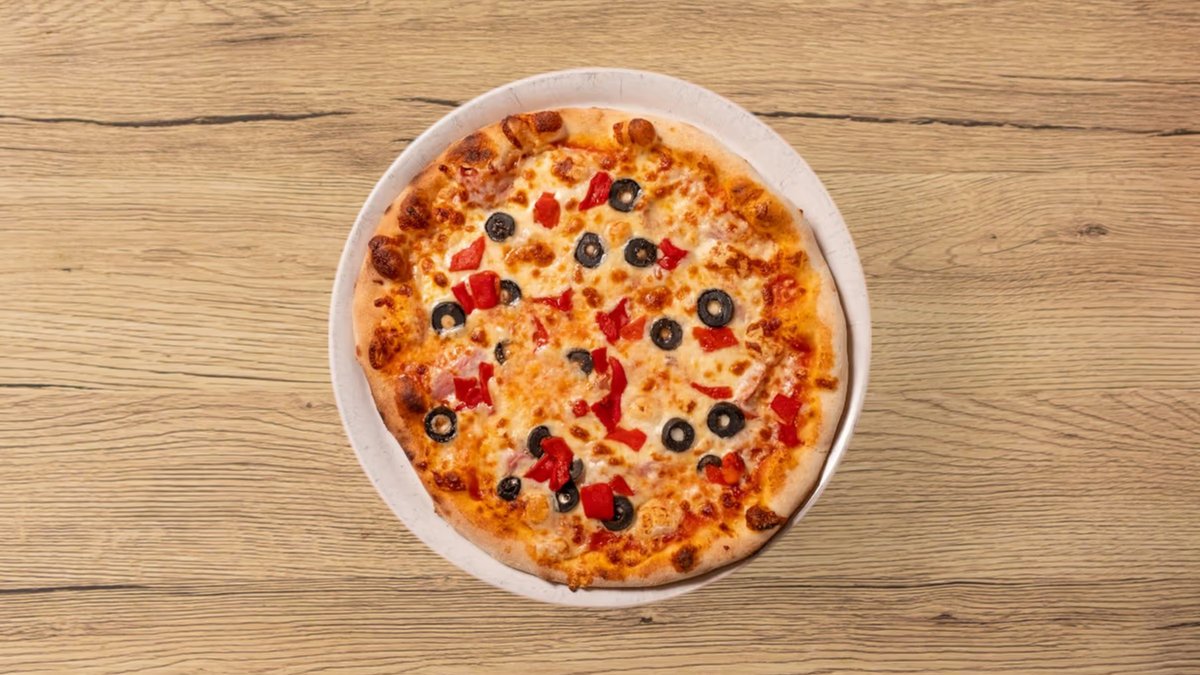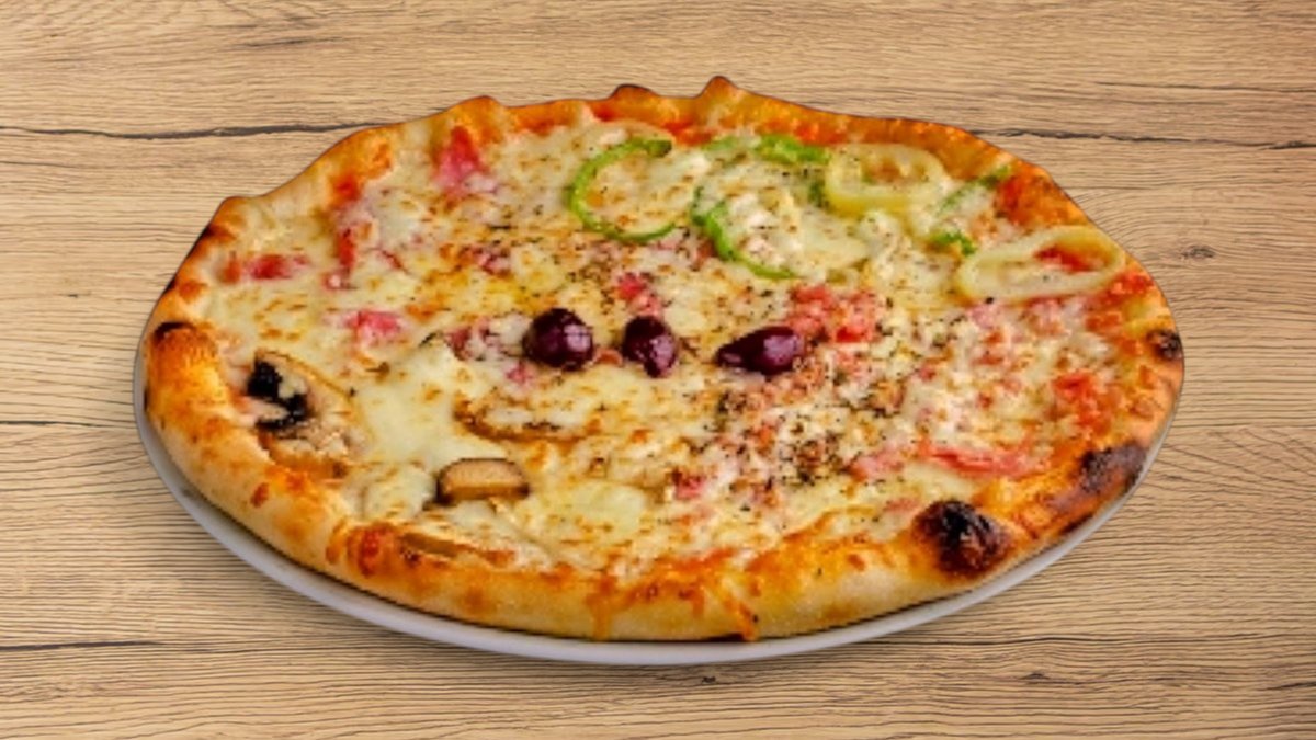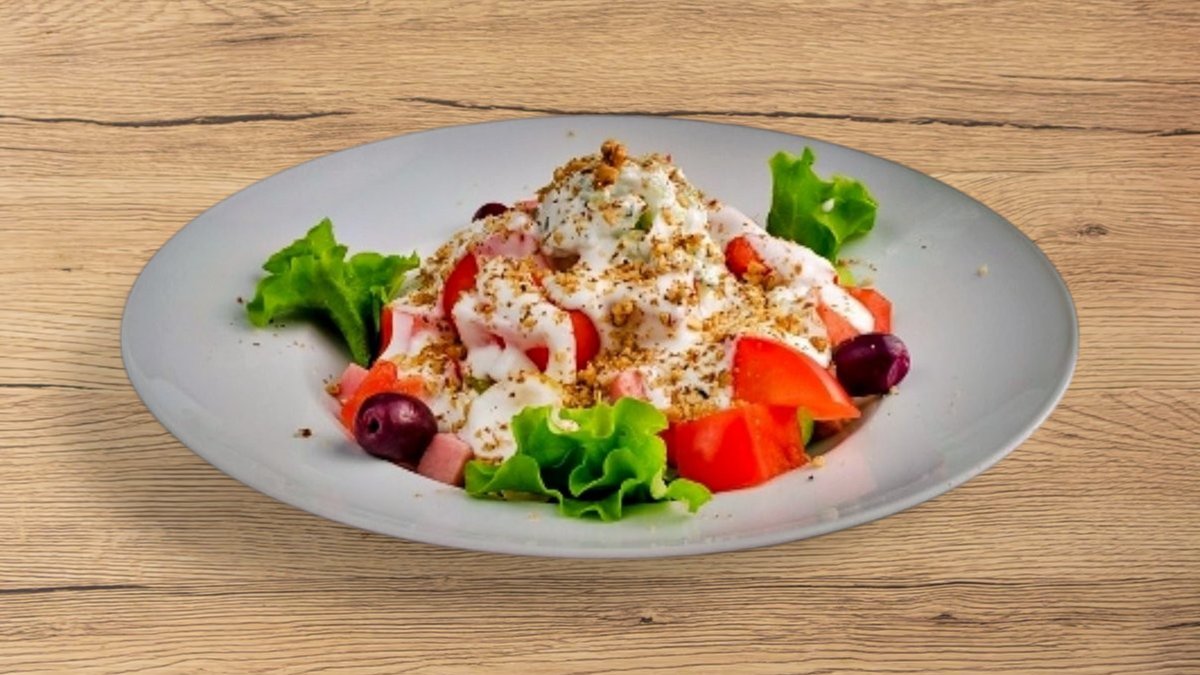 краставици, пресен лук, чушка, гъби, шунка, домати, млечен сос, снежанка, орехи, маслини, 550г