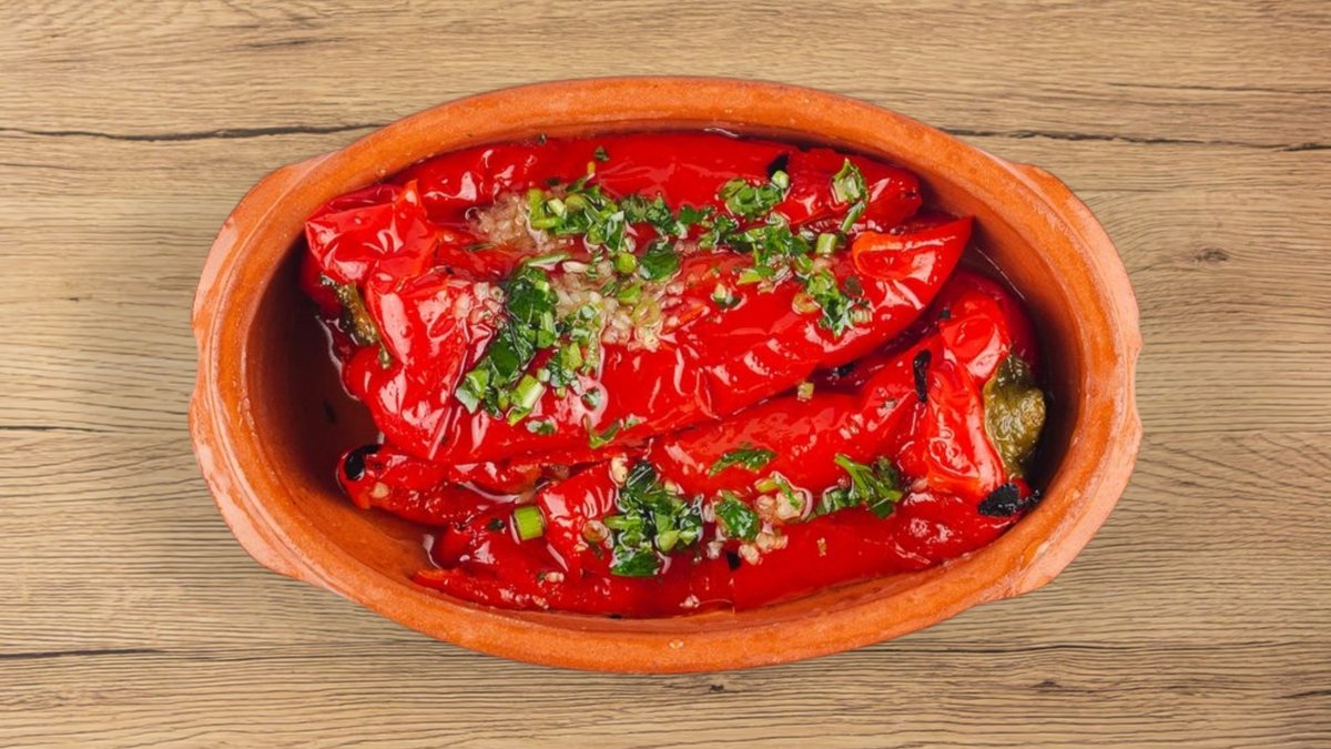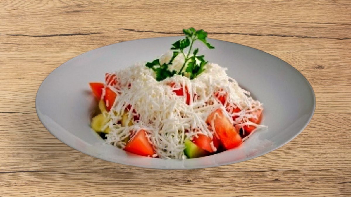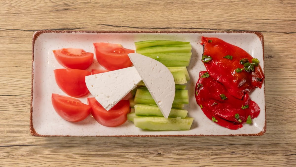 розов домат, краставици, овче сирене, печена зелена чушка, 500г