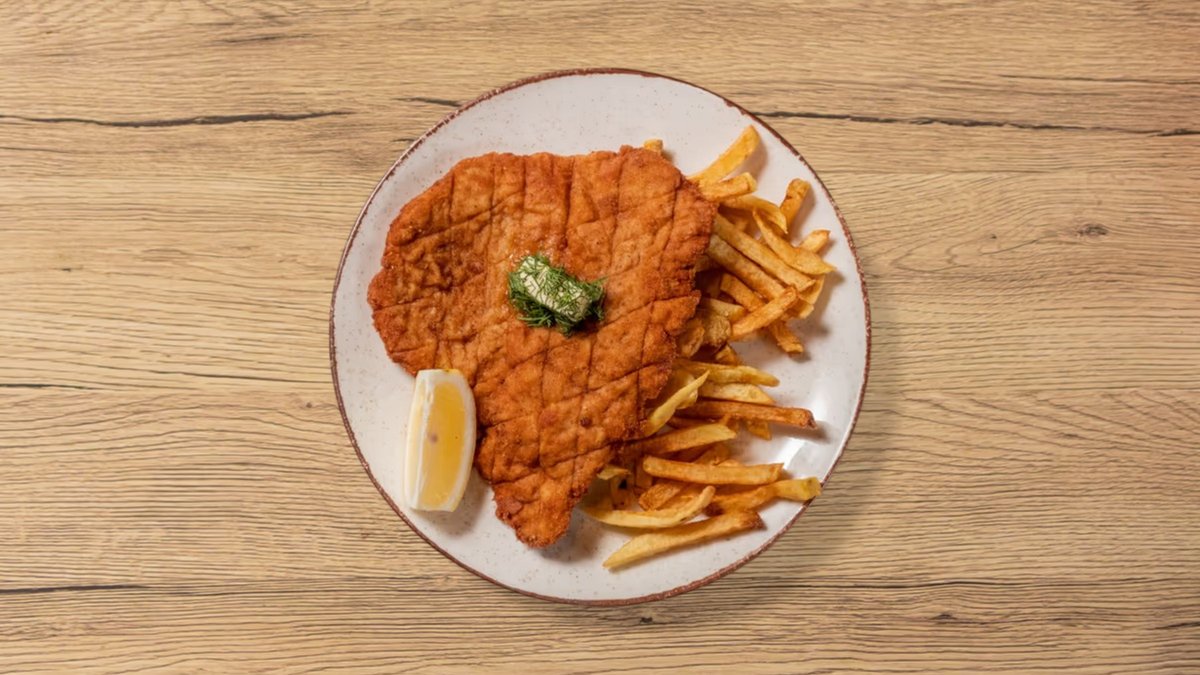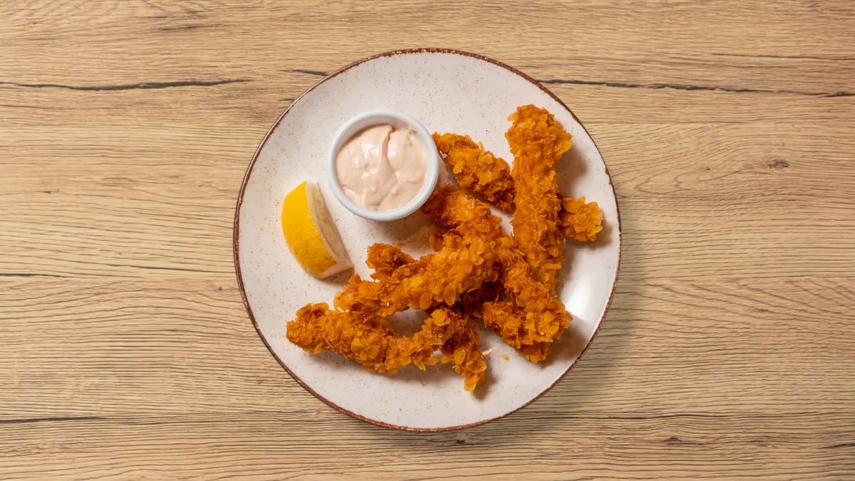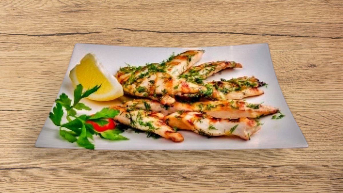 пилешко филе, бяло, червено зеле и морков, пикантни картофи, пикантен сос, лимон, 400г