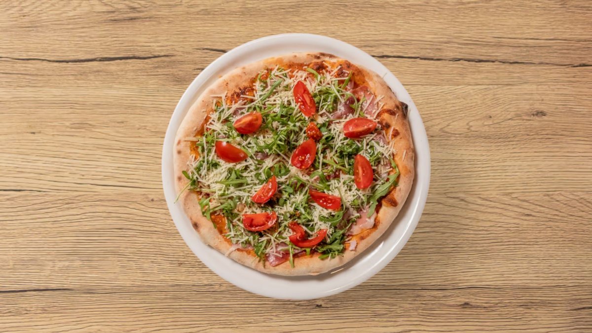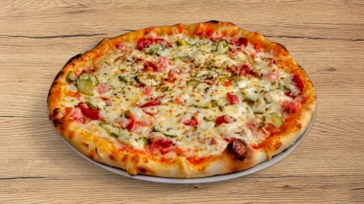 домати, краставици, лук, гъби, сирене, яйце, чушки, шункa, 500г