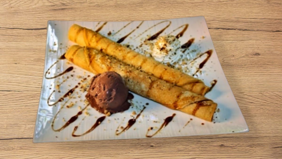 шоколадов мус, ядки - орехи, сладолед, сметана, карамел