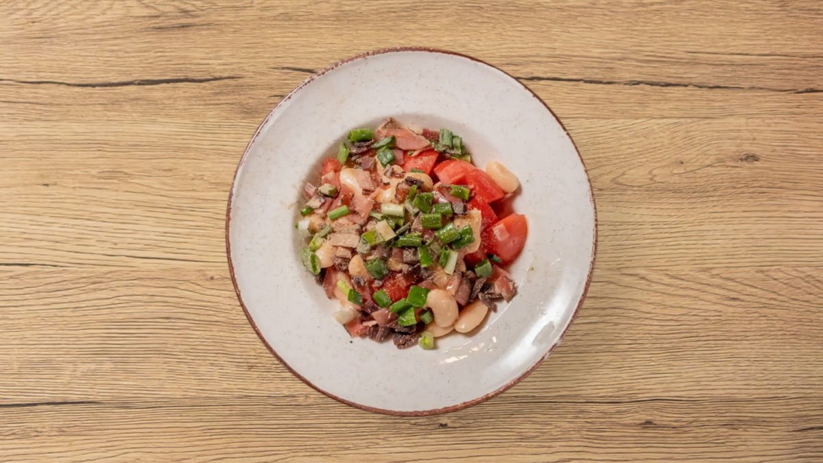 домат, боб, пресен лук, филе "Елена", пастърма, сминдух, чеснова паста, 500г