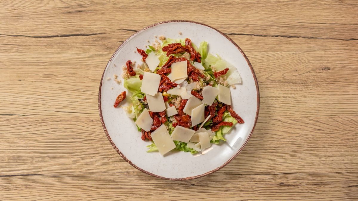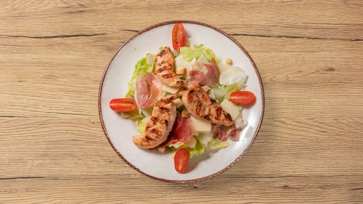 айсберг, прошуто, чери, печено пилешко филе, пармезан, крутони, цезар сос, 400г
